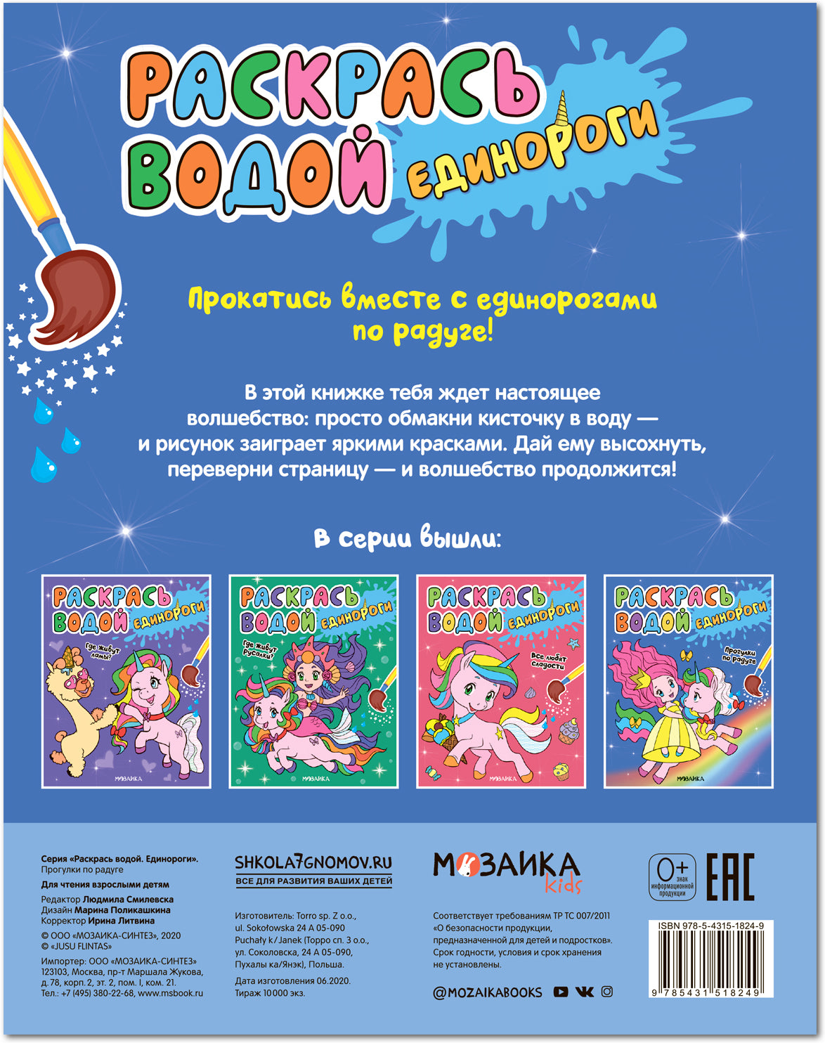 #ASTTD# Search Terms: Мозаика-синтез , Mozaika-sintez , Раскрась водой. Единороги , Raskras vodoi. Edinorogi , 9785431518249 , 978-5-4315-1824-9 , 1603898