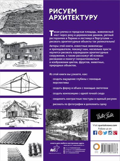 Тихая улочка и городская площадь, живописный мост через реку и деревенские домики, уютный ресторанчик в Париже и лестница в Португалии – рисовать архитектурные объекты так интересно!Авторы этой книги, известные живописцы и преподаватели, покажут вам, насколько просто научится рисовать карандашом архитектурные сооружения, а также расскажут об основах рисования и помогут попрактиковаться в изображении цветов, фруктов, животных, природных объектов.Из этой книги вы узнаете как:• Создать ощущение глубины с помощью перспективы• Создать форму и объем с помощью светотени• Создать композицию с одной точкой схода• Соединить контрастные текстуры в единый рисунок• Рисовать по фотографии и дополнить сцену