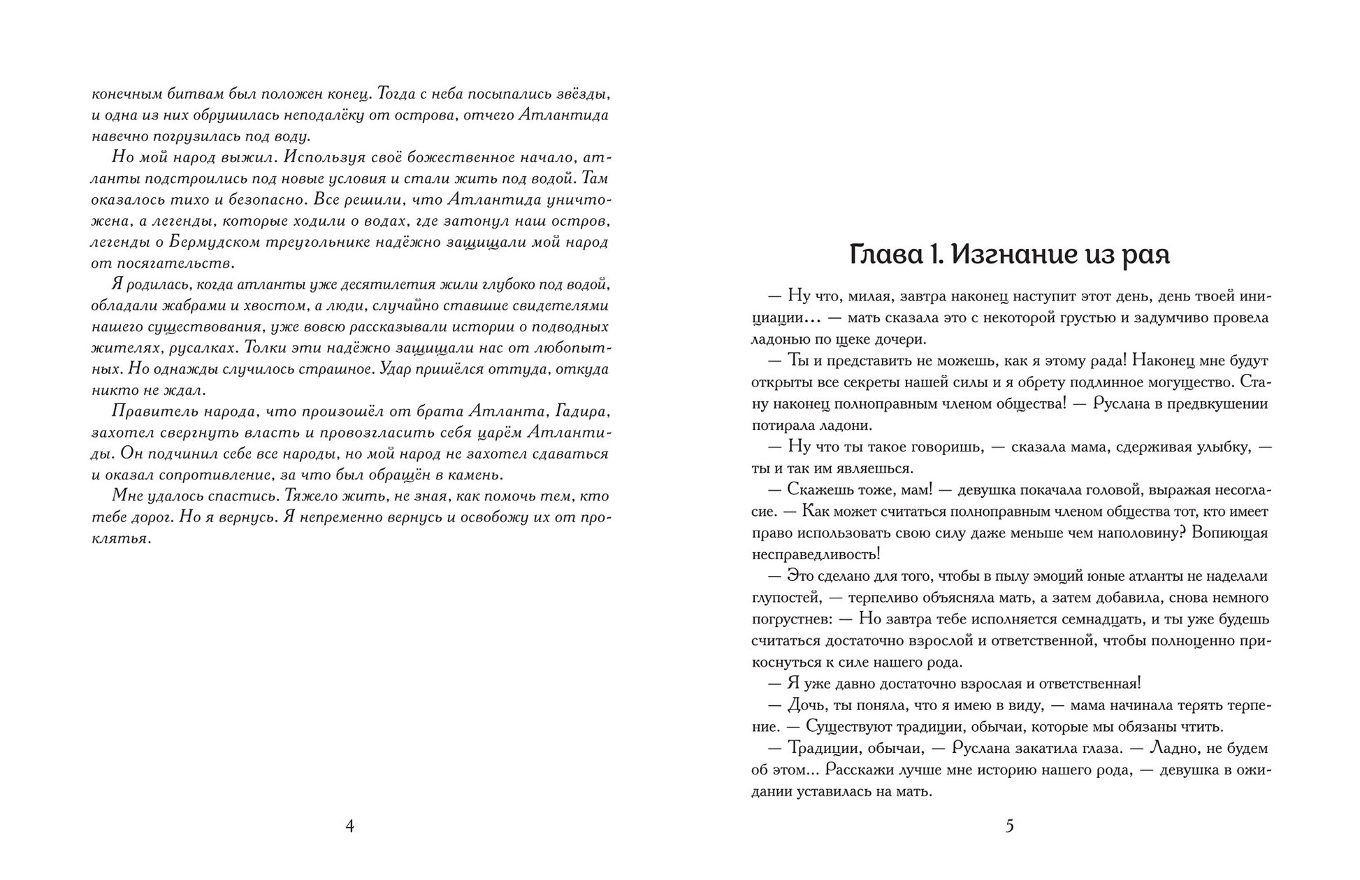 Среди всех заклинаний атлантов есть лишь одно, упоминания о котором были намеренно стёрты. Заклинание, которое дарит бессмертие одному, забирая жизнь у другого. Так вышло, что лишь это заклинание поможет Руслане одолеть Актеона - злодея, свергнувшего царя атлантов.Ты держишь в руках эту книгу, а значит, теперь от тебя зависит, кто победит в финальной схватке! Отыщи в книге все руны, составь заклинание, спаси народ Атлантиды! Четыре причины купить 1Соберете волшебные руны и поможете спасти Атлантиду. 2Насладитесь увлекательной историей приключений русалки в современном мире людей. 3Станете не просто пассивным наблюдателем событий, происходящих в книге, но активным участником! 4Война за трон, настоящая любовь, магия и проклятие. В этой книге есть все, что любят читатели!
