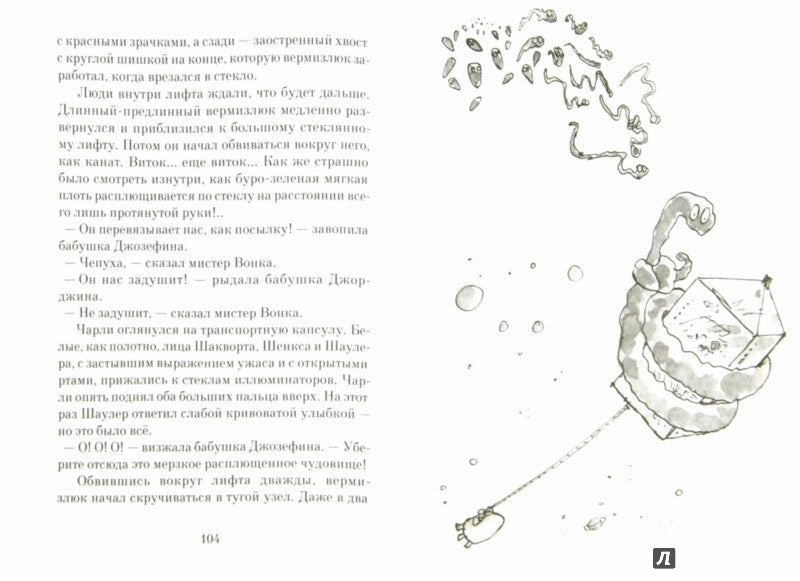Помните, как Чарли Бакет в конце книги «Чарли и шоколадная фабрика» взлетел в небо в большом стеклянном лифте? Что ж, вперед, к новым захватывающим приключениям! Лифт набирает скорость, а Чарли, Вилли Вонка и всякая компания проникают сквозь время и пространство. Посещение первого в мире Космического отеля, битва со злобными вермизлюками, спасение мира – лишь несколько эпизодов их превосходного космического путешествия.