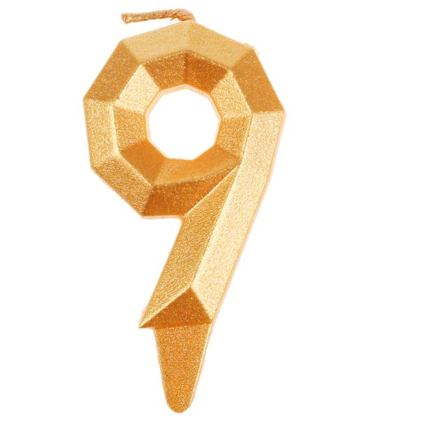 Игрушка "Свеча для торта, цифра "9", золото, блистер, с днем рождения ЧУДО ПРАЗДНИК в кор.48шт". Размер: 0,0056.