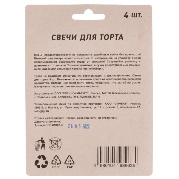Handling time: 24 days Игрушка "Свечи для торта Со стикером на шпажках 4 шт, блистер, единорог ЧУДО ПРАЗДНИК в кор.24наб". Размер: 0.0056.