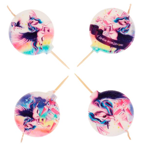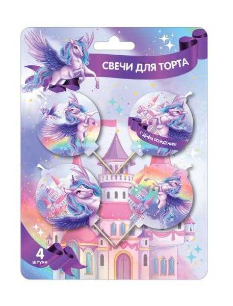 Свечи для торта Со стикером на шпажках 4 шт, блистер, единорог ЧУДО ПРАЗДНИК в кор.24наб