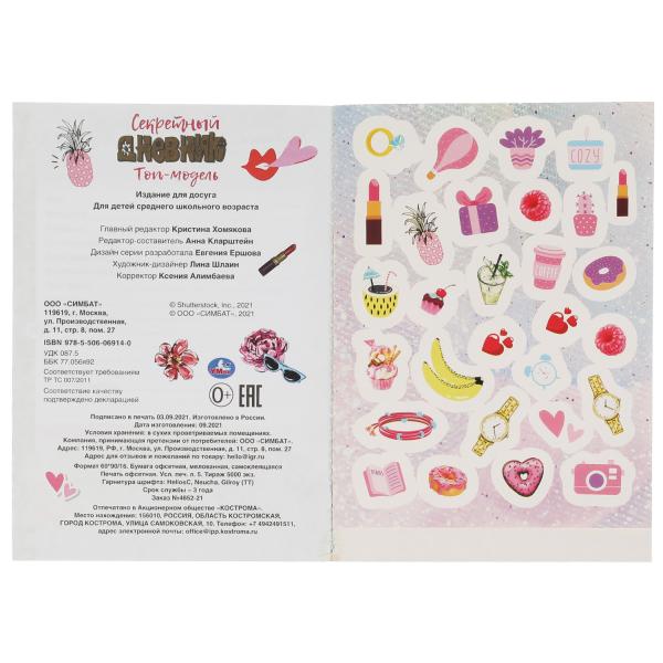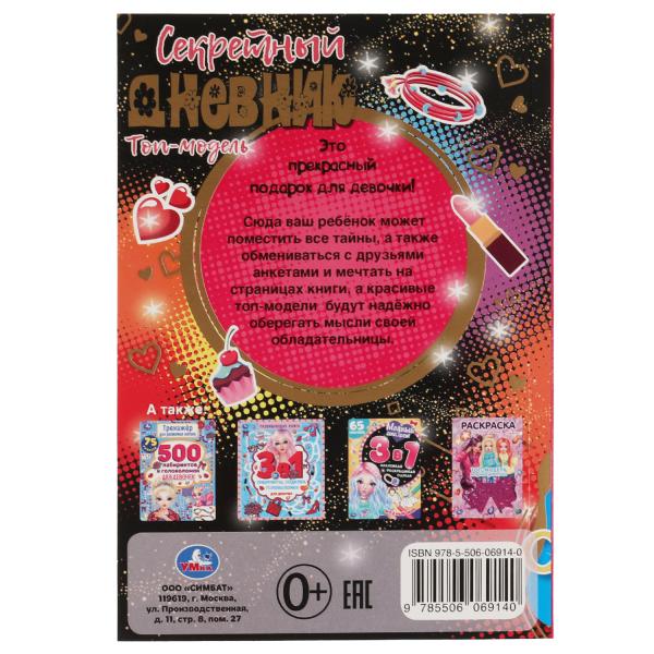 Секретный дневник Топ модели. 144х205 мм, 80 стр.+наклейки Умка в кор.40шт