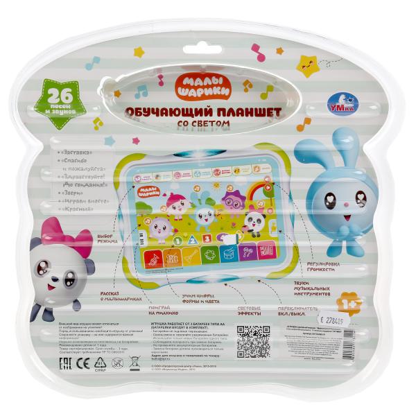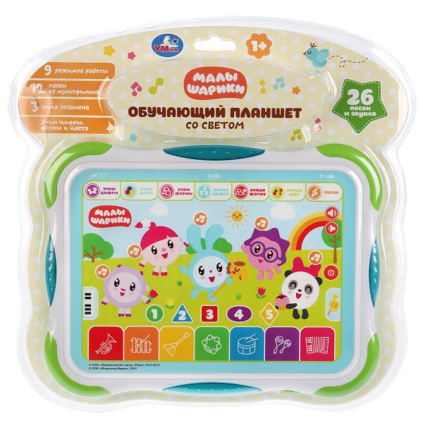 Сенсорный планшет."Малышарики" 9 режимов,учим цифры/формы/цвета,12 песенок.ТМ"УМКА" в кор.2*30шт
