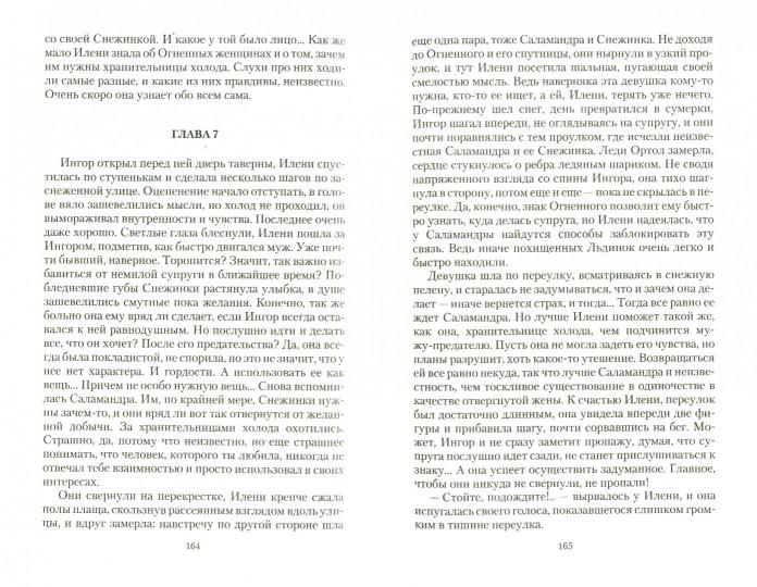Handling time: 19 days В мире, где магия Холода отдана женщинам, Снежинкам, а магия Огня - мужчинам, Огненным магам, есть те, кто, будучи женщинами, все же хранят в своем теле чуждую магию. Огонь не подчиняется Саламандрам, но магия Снежинок способна его усмирить на время, и именно поэтому Трин оказалась в плену у Рэйи. Однако на свободе остались друзья, которые обязательно помогут, не бросят в беде. Ведь опасность для Трин исходит не только от Саламандры, есть еще тот, кто решил забрать Снежинку себе, посчитав, что будет ей лучшим мужем, чем предназначенный ей судьбой и которого выбрала сама Триинэ. А бессмертные Покровители не торопятся приходить на помощь, ведь у каждого из них свой интерес в том, кто успеет первый помочь Снежинке, их игра ведется еще с тех времен, когда Покровители были обычными людьми...