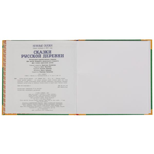 Handling time: 14 days Книга «Сказки русской деревни» из серии «Нужные сказки» ТМ «УМка» непременно понравится малышу:- 5 сказок: «Лисичка со скалочкой», «Курочка ряба», «Репка», «Три поросёнка», «Теремок»- красочные крупные иллюстрации- твёрдый переплёт- формат «квадрат»