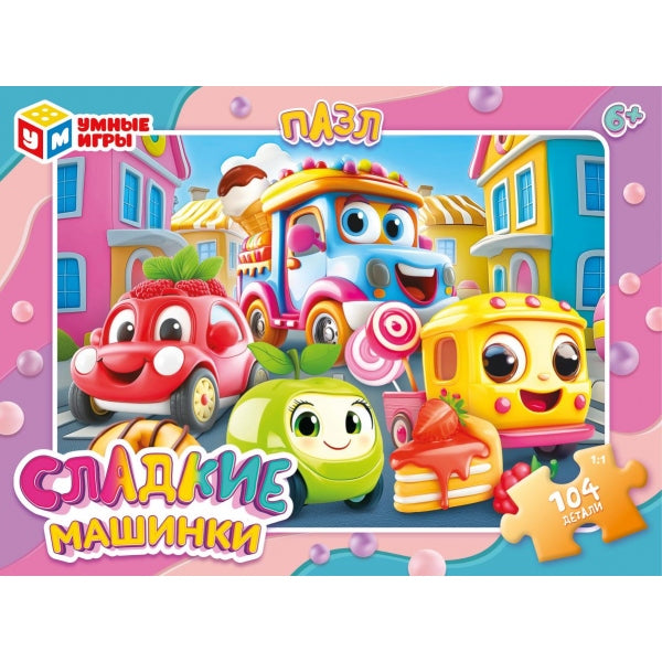 Сладкие машинки. Пазлы в коробке 104 детали. 190х141х35 мм. Умные игры в кор.24шт