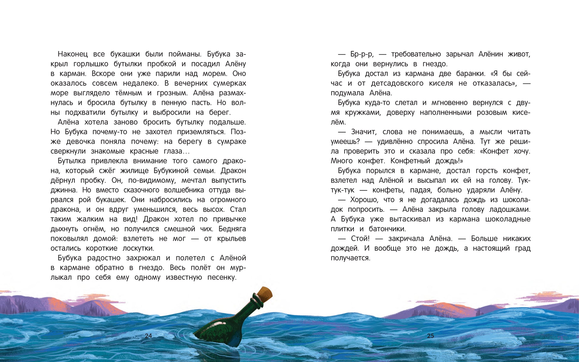 И вдруг Алёна поняла, что Бубука ещё малыш. Оказалось, что он сирота: его родителей уничтожил страшный дракон. Бубука очень одинок, ему тоскливо без мамы и папы.