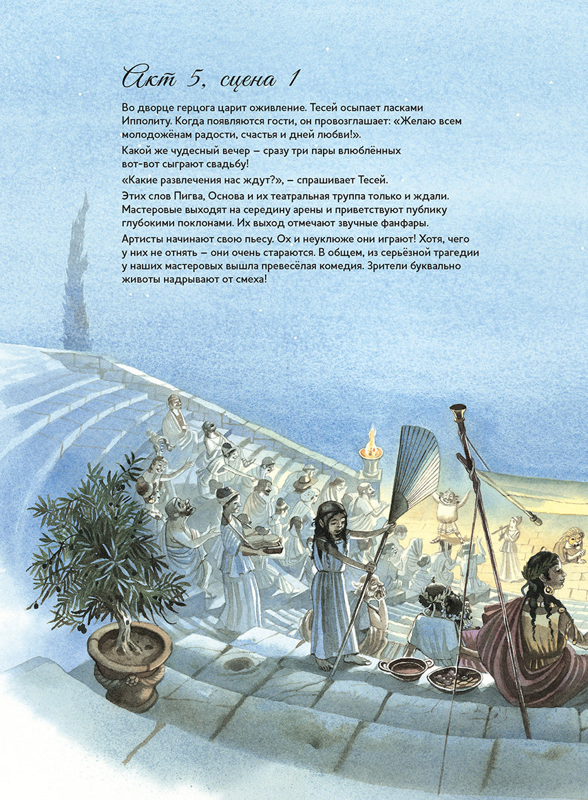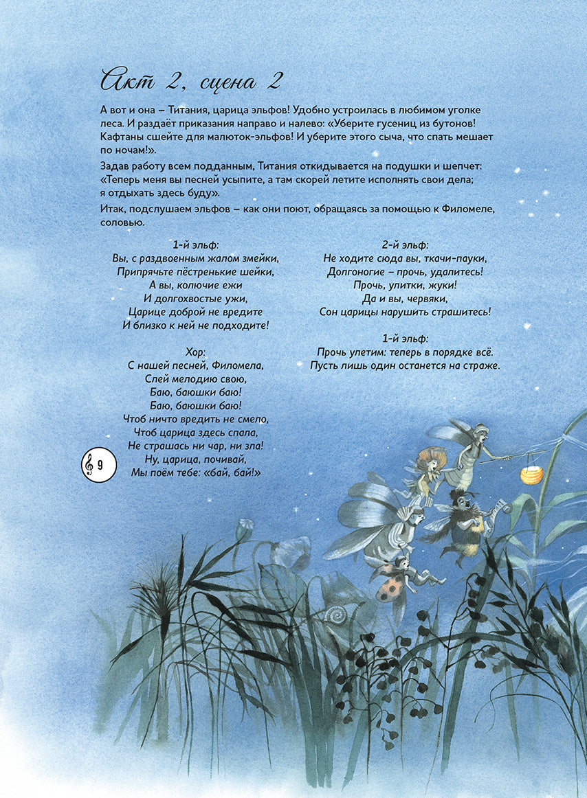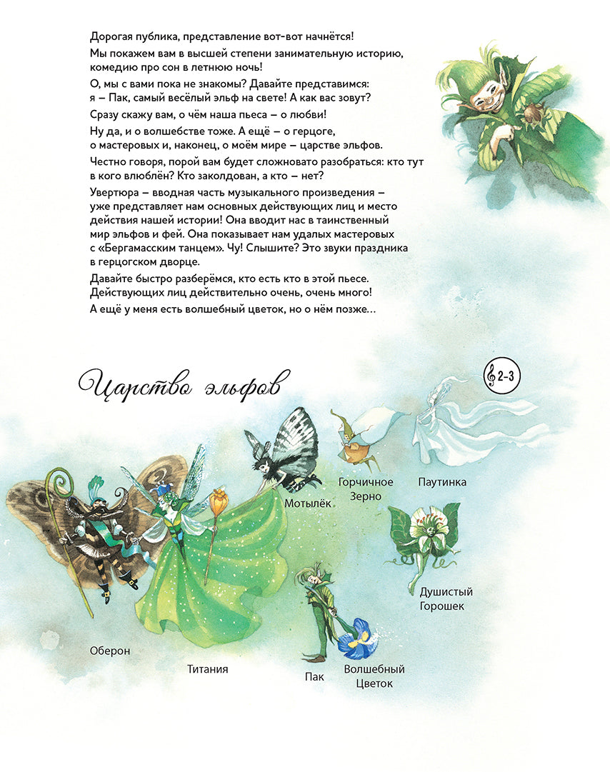 В этой книге юных читателей ждёт весёлая и увлекательная история о ночных приключениях знатных молодых людей, а также эльфов и простаков-мастеровых. Все они – герои сказочной комедии Уильяма Шекспира, написанной в 1594–1596 годах. Концертная увертюра Феликса Мендельсона, созданная для постановки этой комедии при дворе короля Фридриха-Вильгельма IV, перенесёт детей и их родителей в леса под Афинами, где проказливые эльфы с помощью волшебных чар запутывают влюблённых молодых людей и дурачат недотёп-ремесленников, отправившихся в лес репетировать....