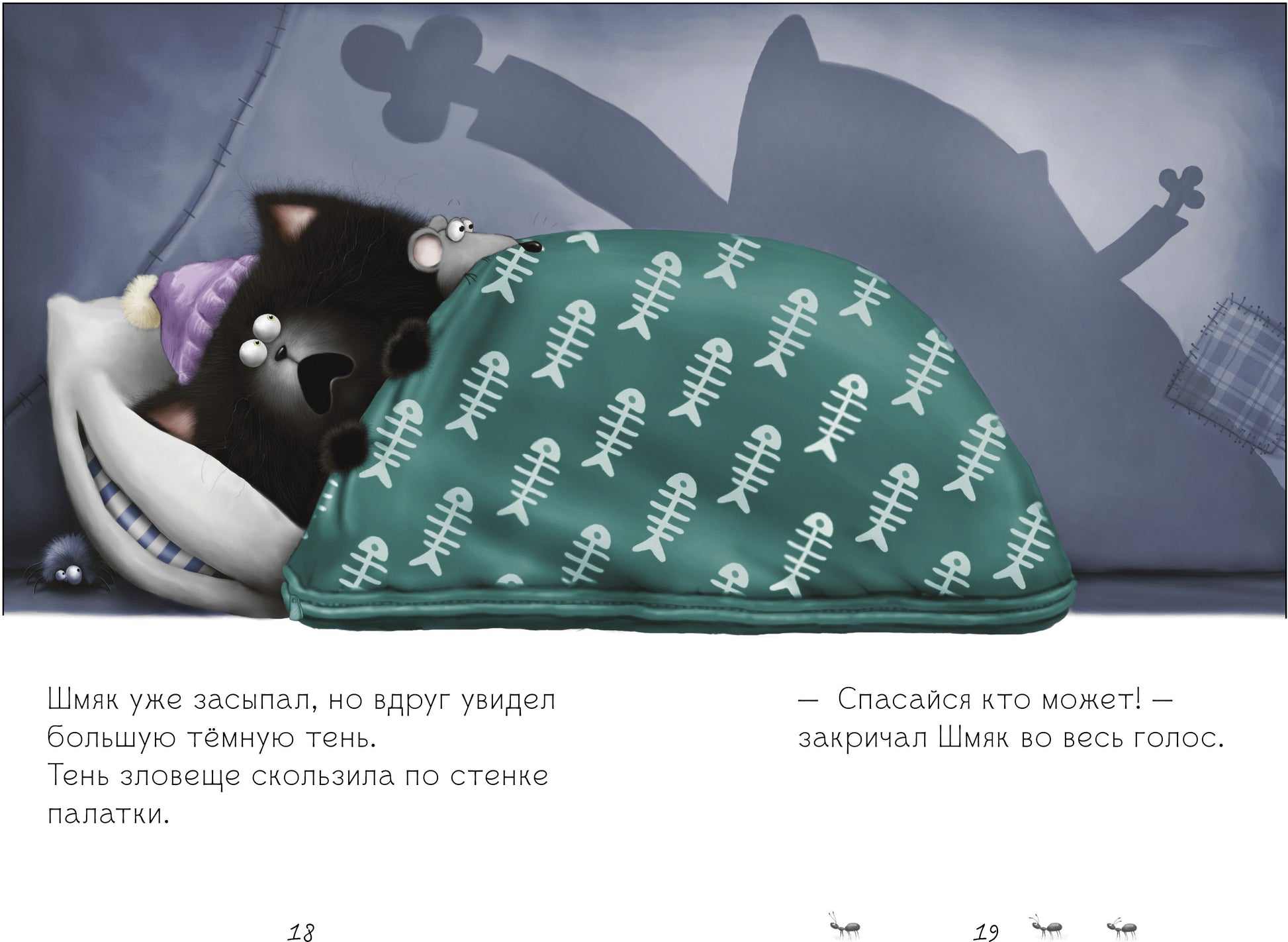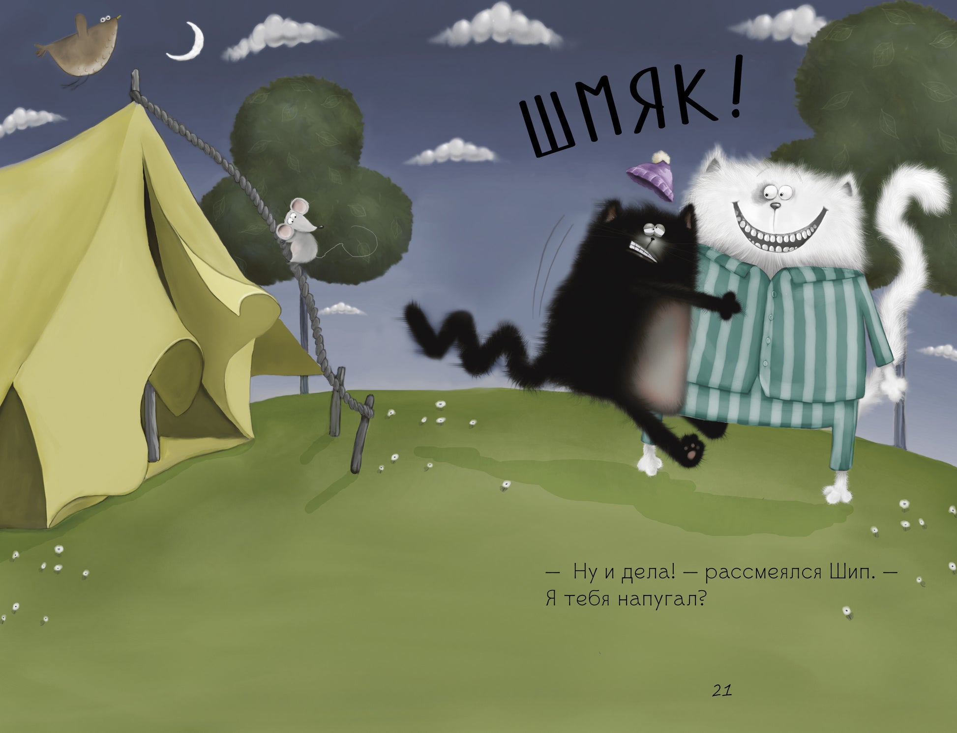 Что вас ждет под обложкой: Что может быть лучше, чем спать в палатке с собственным садом? Конечно же ничего! И именно поэтому Котёнок Шмяк с нетерпением ждёт вечера. Но мама готовила котенку не очень приятный сюрприз - к нему на ночёвку придет злой враг Шип. Неужели долгожданное приключение превратится в сплошное разочарование? Об этом каждый из вас узнает, прочитав новую книжку «Спокойной ночи, Шмяк!». Гид для родителей: В новой книге о любимом котенке Шмяке «Спокойной ночи, Шмяк!» мы узнаем о приключениях этого веселого героя. На этот раз ему предстоит помириться со своим врагом и впервые провести ночь в палатке! С детьми наверняка придется подобная история, и даже взрослые знают, как основа помириться с врагом – это один из самых трудных и благородных поступков. Что же думает ребенок и как ему лучше поступить, вы поймете после прочтения книги. Изучайте новинку вместе с ребенком и обсуждайте все происходящее или предложите малышу почитать – смешные картинки и простые слог-книги подходят для первого чтения детей в возрасте от 3 лет! «Спокойной ночи, Шмяк!» - Мировой бестселлер детской литературы и вся серия о котенке Шмяке впервые издана на английском языке! А если вы следите за приключениями котенка и собираете коллекцию книг об этом веселом озорнике вместе с детьми, не пропустите и эту книгу о Шмяке! Изюминки книжки: • Новая книжка НОВОГО ФОРМАТА С КРУПНЫМИ БУКВАМИ для ПЕРВОГО САМОСТОЯТЕЛЬНОГО ЧТЕНИЯ серии про котенка Шмяка! • Книги про Шмяка – бестселлер! Совокупный тираж серии за 6 месяцев – 76 000 экземпляров! • Добрые веселые истории на самые популярные темы в мире – любовь, дружба и взаимовыручка. • Крупный шрифт, отличное качество полиграфии, плотные страницы. • ГИД ДЛЯ РОДИТЕЛЕЙ по выбору книг для чтения! • Длинная серия – в 2015 году запланировано на выход около 20 книг про приключения котенка (в том числе новый формат – книги для первого самостоятельного чтения – 15 наименований).
