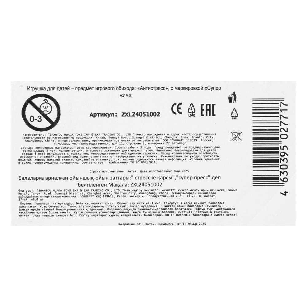 Игрушка "Супер мялка антистресс мялка языковстики, дисплей Супер Жим уп-12шт в кор.12уп". Размер: 0,08.