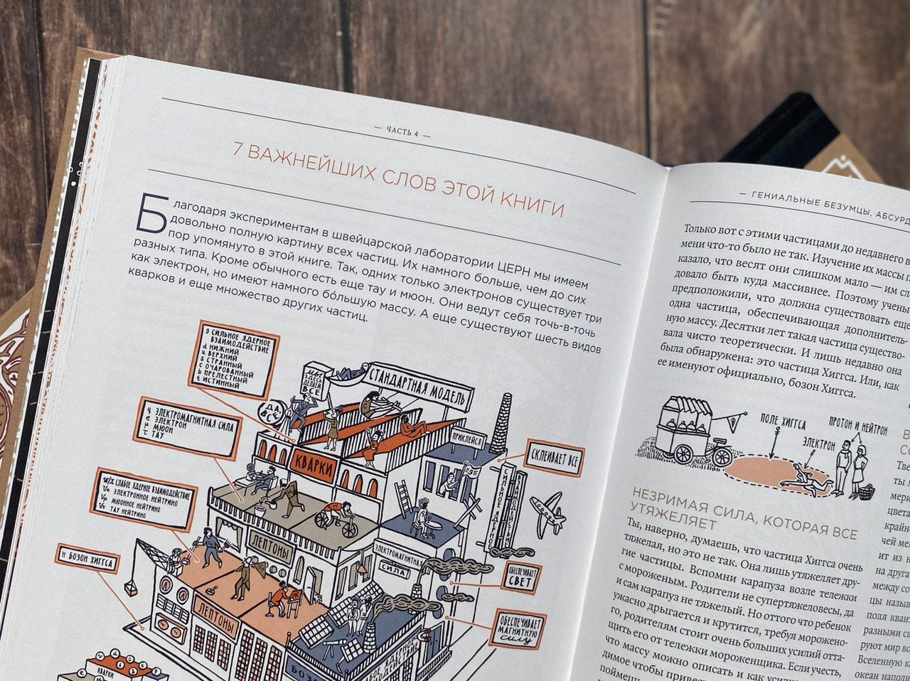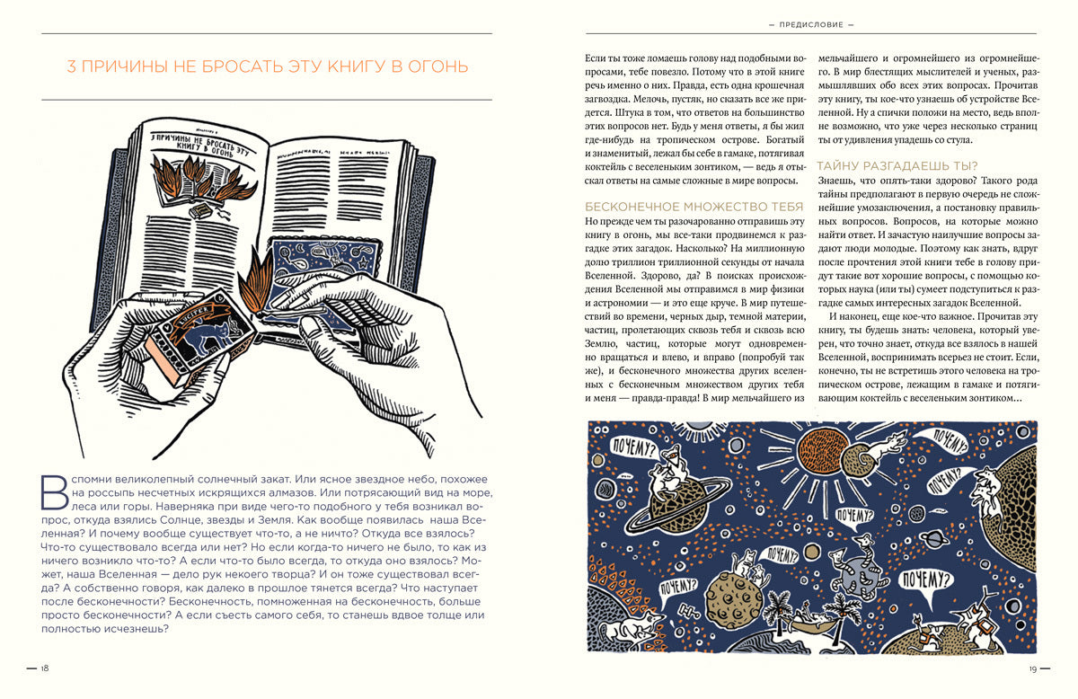 Handling time: 34 days Захватывающее, подробное и максимально возможно понятное описание самых непонятных вещей — а именно описания происхождения Вселенной с точки зрения современной физики. В этой книге Схюттену как всегда удалось найти способ рассказать о сложнейших вещах простым и остроумным языком. Для начала он отправляет читателя на миллиарды лет назад и вместе с ним наблюдает за тем, как выглядел Большой взрыв всего через крошечную долю секунды после начала. Затем постепенно прослеживает, как менялась Вселенная, попутно рассказывая о таких вещах, как строение атома и субатомных частиц, о теории множественных Вселенных, теории относительности и теории вероятностей. Как всегда он предлагает провести различные мысленные эксперименты, в том числе невозможные (например, как выглядел бы мир, если бы скорость света была медленнее). А в конце задает и даже берет на себя смелость ответить на вопрос о смысле жизни.Прочитав эту книгу, просто нельзя не увлечься физикой. А увлекательности ей добавляют замечательные иллюстрации художницы Флоор Ридер.Вкратце:- Третья книга из научно-популярной трилогии.- Чтение этой книги может заменить годичный курс физики (но это не точно).- Прочитавший эту книгу сможет легко объяснить, что такое бозон Хиггса, а также перечислить все название кварков.- Лучшая книга, чтобы заинтересоваться физикой.Аудитория:Начиная с 12 лет. Увлекательное чтение для взрослых, желающих вспомнить о том, чему учили в школе.О серии:Ян Паул Схюттен — не ученый, а просто очень любопытный и дотошный человек. Как и многие взрослые и не очень люди, он что-то слышал про эволюцию, знал про Большой взрыв и красные кровяные тельца. Но он решил разобраться во всем этом так, чтобы можно было интересно и главное понятно рассказать это подросткам. А для этого ему потребовалось изучить результаты последних научных открытий, поговорить со множеством ученых и проверить все факты, которые в конце концов вошли в его книги.Помогала ему в этом замечательная художница Флоор Ридер, сумевшая уловить легкий, но не легкомысленный тон автора, и воплотить его в иллюстрациях.В результате получилась интереснейшая трилогия, посвященная возникновению жизни на Земле и эволюции, устройству человеческого организма и последним физическим сведениям о Вселенной. Все три книги написаны так, что в них сложнейшие научные явления и открытия (например, теория относительности Эйнштейна, механизм работы ДНК, описание субатомных частиц и слабых физических взаимодействий) описаны настолько понятно, что хочется как минимум узнать про физику и биологию как можно больше.Можно с уверенностью утверждать, что человек, прочитавший все три книги, будет знать о жизни абсолютно все. Или почти все.Об авторах:Ян Паул Схюттен родился 30 ноября 1970 года в Флиссингене, Нидерланды. В детстве он не знал, кем стать: полицейским или ковбоем? Или космонавтом? Но когда подрос, то уже твердо захотел стать писателем. После окончания школы Ян Паул поступил в Университет Утрехта на факультет коммуникаций. Во время учебы он работал копирайтером в рекламном агентстве, а в 2003 году написал первую детскую книгу «Ruik eens wat ik zeg». Это нон-фикшн о тайном языке растений и животных. Схюттен на простых примерах объясняет, что означают звуки, запахи и цвета в природе.С тех пор в поле зрения писателя попало едва 