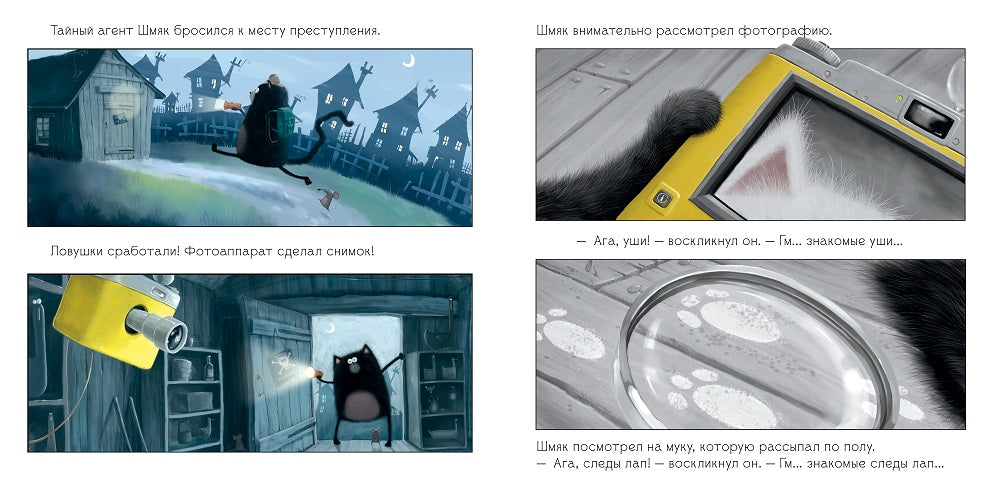 Что вас ждет под обложкой: Очередная новинка о любимом котенке, который почувствовал себя тайным агентом. В доме у Шмяка происходят необъяснимые вещи – кто-то нагло ворует из-под носа у котёнка игрушечных утят из его коллекции. Необходимо срочно расследовать исчезновение. За дело берутся тайный агент Шмяк и его помощник – «агент С». Кто же этот таинственный похититель? И зачем ему понадобились утята? Обо всем этом вы узнаете в новой книжке про любимого Шмяка «Тайный агент Шмяк». «Если кто‑то поступил не очень красиво, может быть, у него были на то причины? Ведь так важно уметь понять даже того, кто виноват перед тобой. Шмяк и Сырник искали похитителя утят, а нашли… нового друга.» Екатерина Керова, главный редактор журнала «счастливые Родители». Гид для родителей:  Новая книга «Тайный агент Шмяк» станет веселым приключением для детей в возрасте от 3-5 лет. Вы можете читать новинку вместе с детми, или предложить ребенку почитать книгу самостоятельно – веселые картинки и простой слог подойдут для первого чтения как нельзя лучше! Мировой бестселлер детской литературы впервые издается на русском языке! Невероятные приключения котенка Шмяка, который давно известен нам из интернета, интересные иллюстрации и незабываемые герои сделают эту книгу самой любимой! Соберите все поучительные истории о незабываемом персонаже – котенке Шмяке.  Изюминки книжки:   • Продолжение супер успешной серии «Котенок Шмяк».  • Тираж первой книги продан за 3 недели!  • «Тайный агент Шмяк» – мировой бестселлер, иллюстрации стали популярными в России задолго до выхода книги.  • Автор Роб Скоттон – знаменитый детский писатель и художник.  • Книга «Тайный агент Шмяк» - уникальна. Великолепные авторские забавные рисунки составляют веселую и интересную историю.  • Небольшой удобный формат – можно взять книгу с собой.  • Отличное качество полиграфии, твердая обложка, плотные страницы.  • Идеальная книжка для первого самостоятельного чтения!