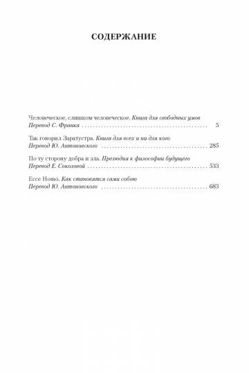 Handling time: 19 days Фридрих Ницше - гениальный немецкий мыслитель, под влиянием которого находилось большинство выдающихся европейских философов и писателей первой половины XX века: провозвестник появления сверхчеловека, «свободных умов», бунтующий против всех моральных устоев и самого Бога. Со свойственной ему парадоксальностью мысли и глубиной психологического анализа Ницше развенчивает нравственные предрассудки и проводит ревизию европейской культуры. В настоящем издании представлены четыре самых значительных произведений Ницше, отмечающих ключевые моменты жизни и творчества этого великого мыслителя: «Человеческое, слишком человеческое», «Так говорил Заратустра», «По ту сторону добра и зла», «Ecce Homo».