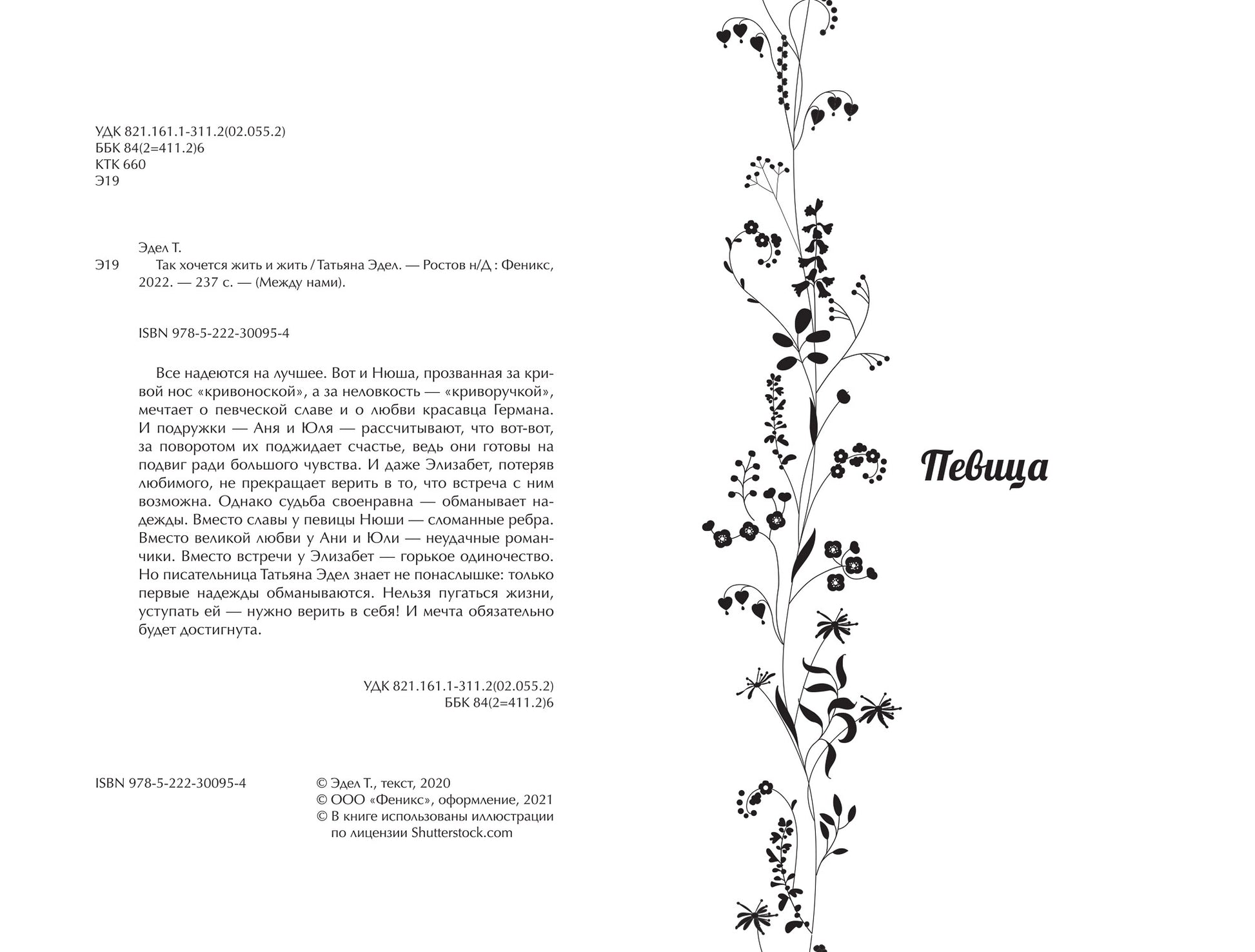 Все надеются на лучшее. Вот и Нюша, прозванная за кривой нос "кривоноской", а за неловкость- "криворучкой", мечтает о певческой славе и о любви красавца Германа. И подружки - Аня и Юля - рассчитывают, что вот-вот, за поворотом их поджидает счастье, ведь они готовы на подвиг ради большого чувства. И даже Элизабет, потеряв любимого, не прекращает верить в то, что встреча с ним возможна. Однако судьба своенравна - обманывает надежды. Вместо славы у певицы Нюши - сломанные ребра. Вместо великой любви у Ани и Юли - неудачные романчики. Вместо встречи у Элизабет - горькое одиночество. Но писательница Татьяна Эдел знает не понаслышке: только первые надежды обманываются. Нельзя пугаться жизни, уступать ей - нужно верить в себя! И мечта обязательно будет достигнута.