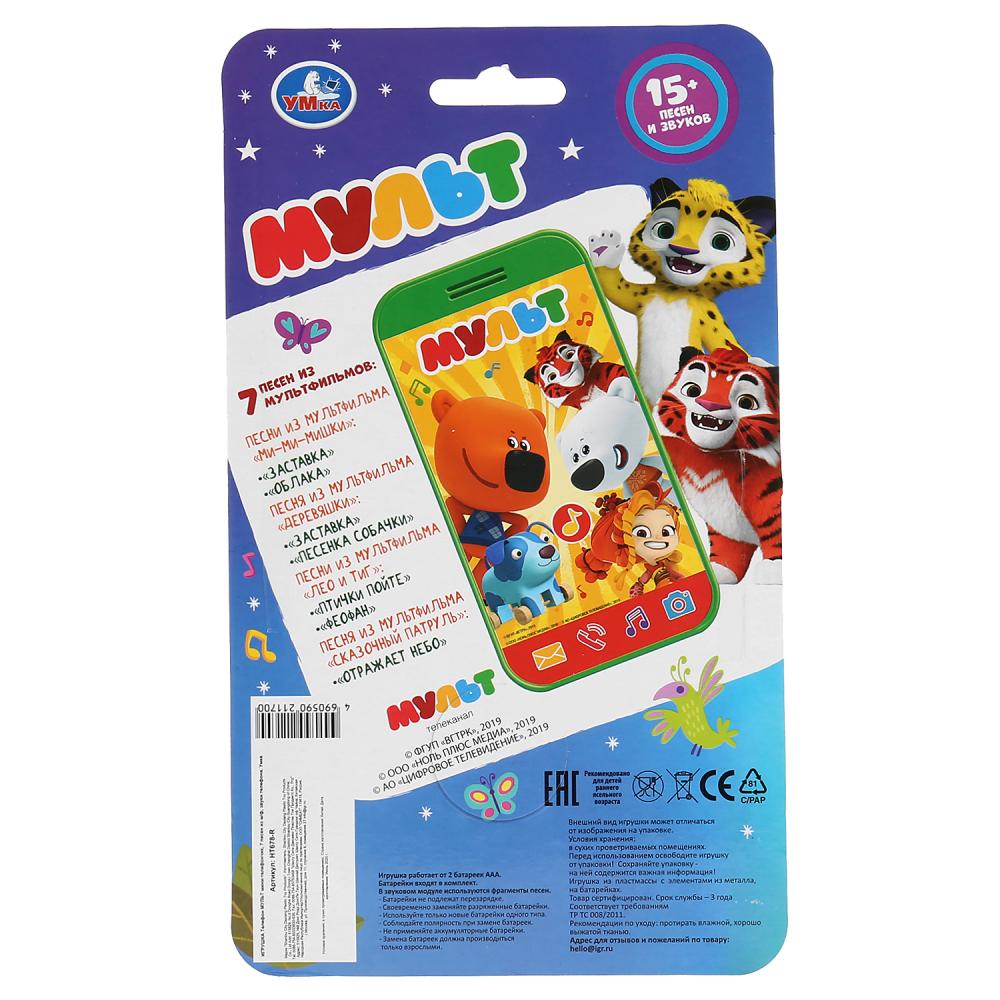 Телефон МУЛЬТ мини-телефончик, 7 песен из м/ф, звуки телефона в кор. Умка в кор.180шт