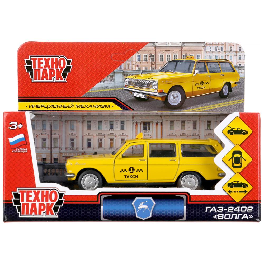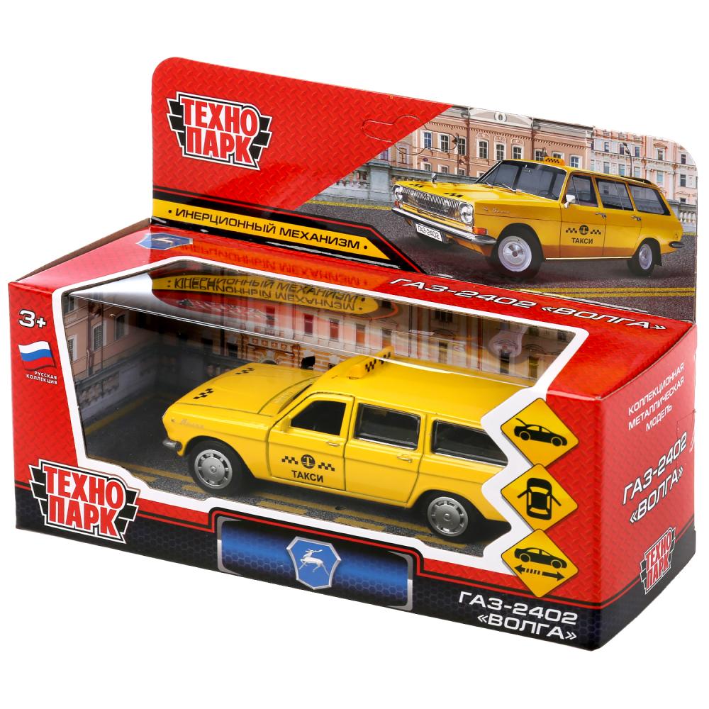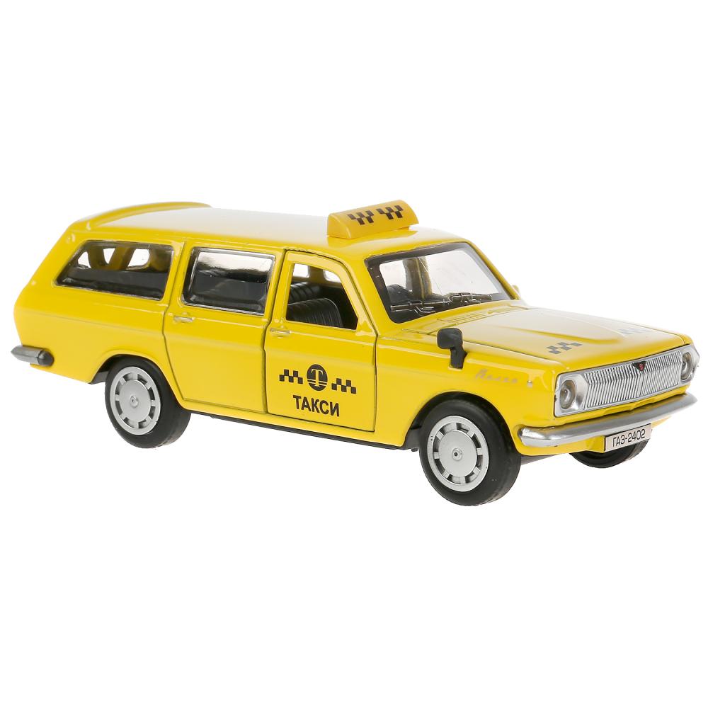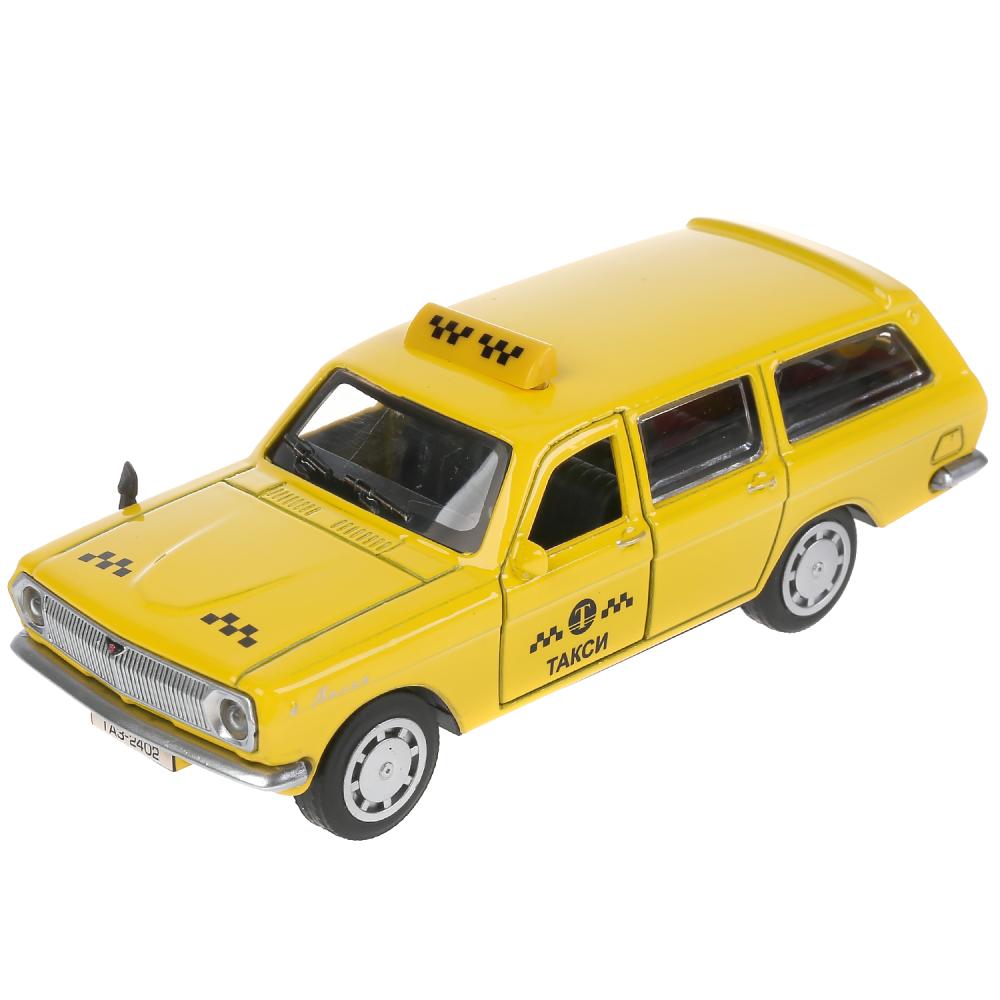 Технопарк. Газ-2402 "Волга. Такси" 12 см, металл, двери, багажник, желтая, в кор. арт.2402-12TAX-YE