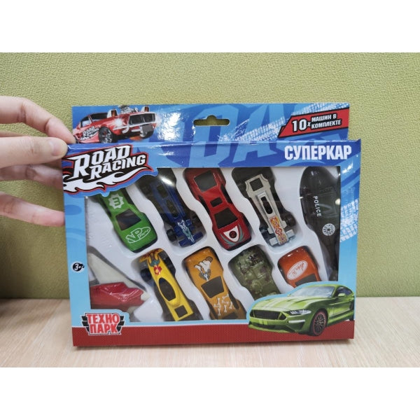Технопарк. Набор металлической техники "Road Racing Суперкар" 7,5 см, 10 шт, в ассортименте, арт.RR-SET-0064870-R