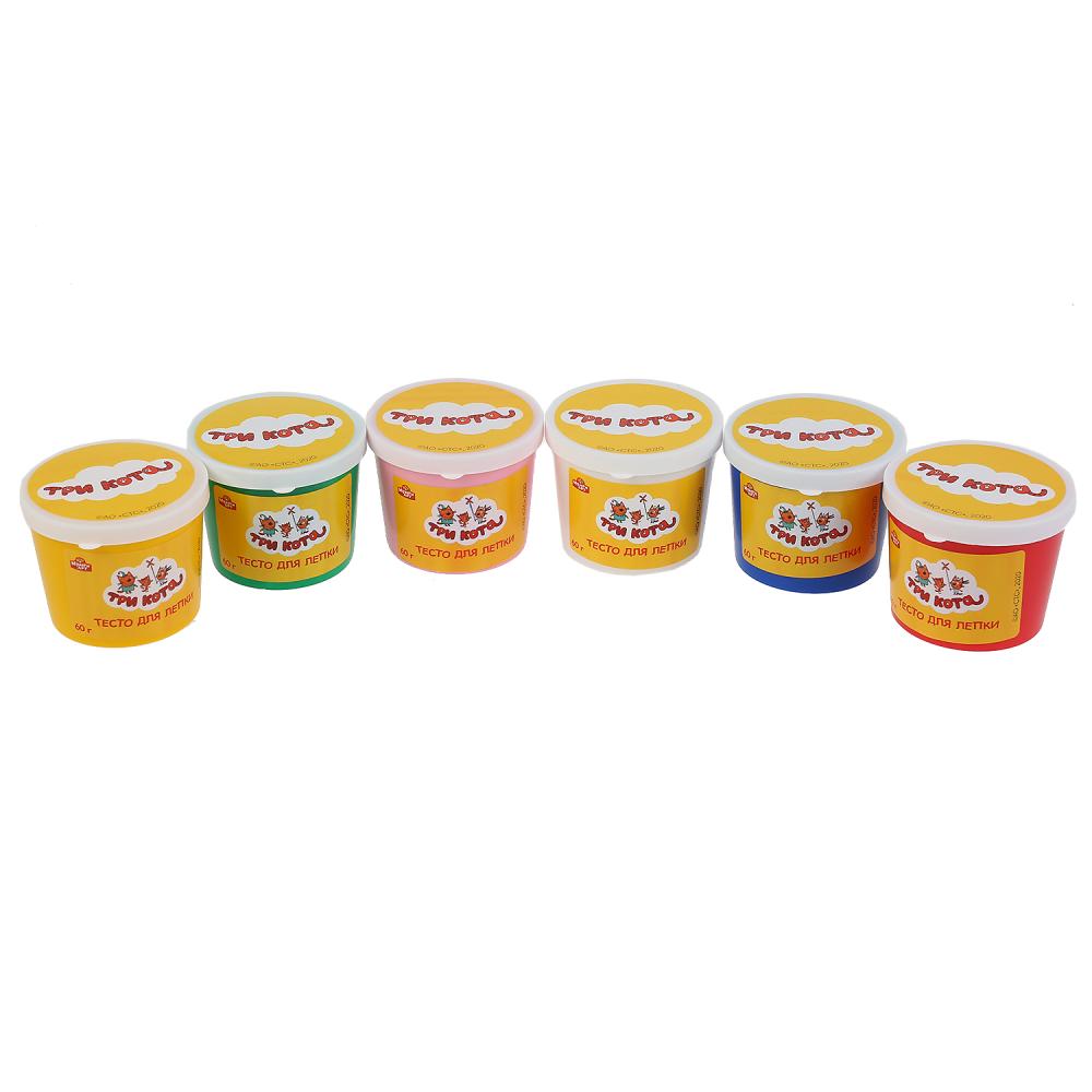 ТМ МУЛЬТИ АРТ Тесто для лепки, 6 цв. по 60 г "Три Кота" в кор.12шт