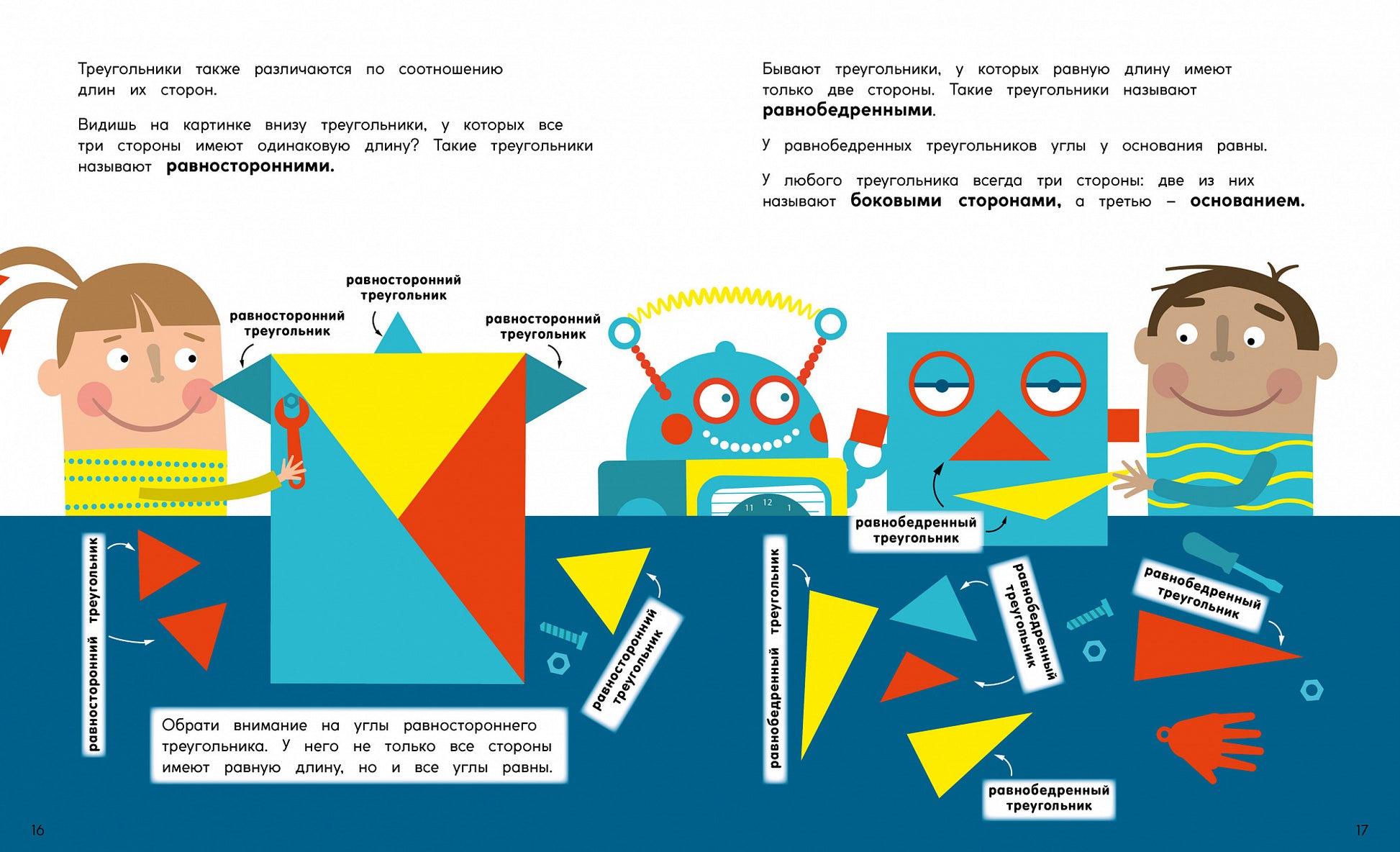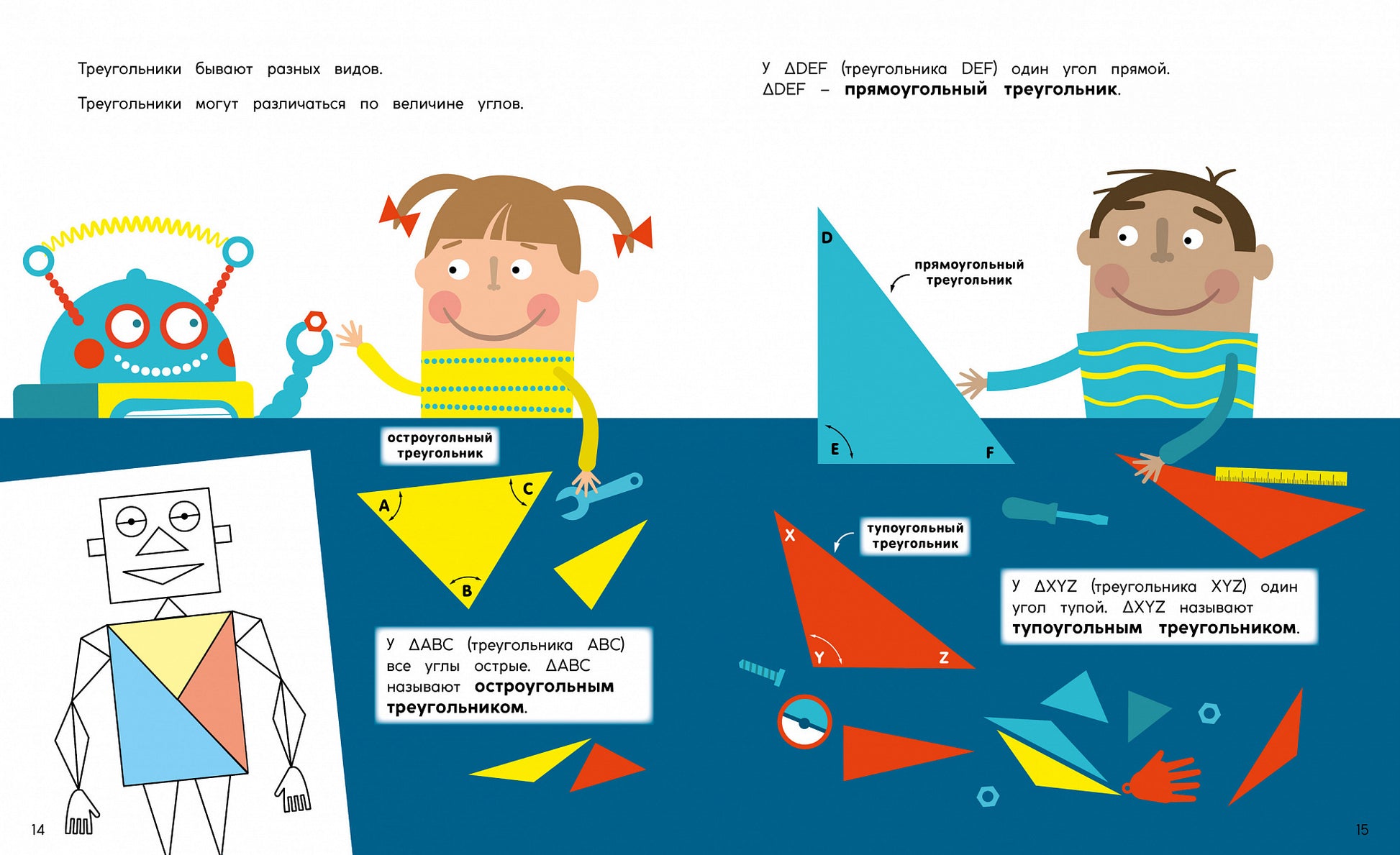 Handling time: 14 days Книги серии «Физмат для дошколят и постарше ребят» познакомят вашего ребёнка с основными математическими и физическими понятиями. Материал в книгах подан кратко и просто — только самая важная информация по предмету и яркие, понятные иллюстрации, которые непременно запомнятся вашему маленькому математику и сделают занятия интересными.Автор книг — Дэвид Абрахам Адлер, известный популяризатор науки, написавший более 250 книг для детей и подростков. Его произведения помогли многим детям понять и полюбить точные науки.Эта книга о треугольниках. Ваш ребёнок познакомится с разными видами треугольников и научится измерять углы. Все примеры в книге сопровождаются занимательными упражнениями, которые помогут усвоить материал.