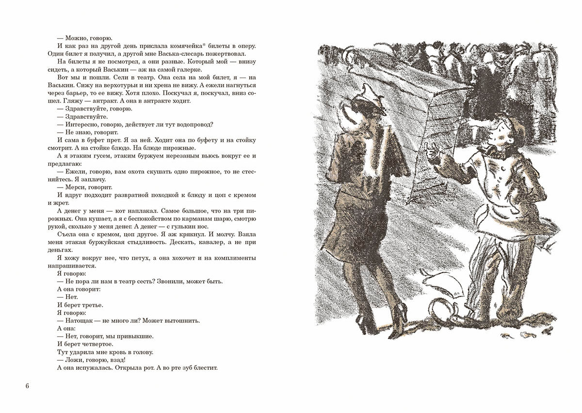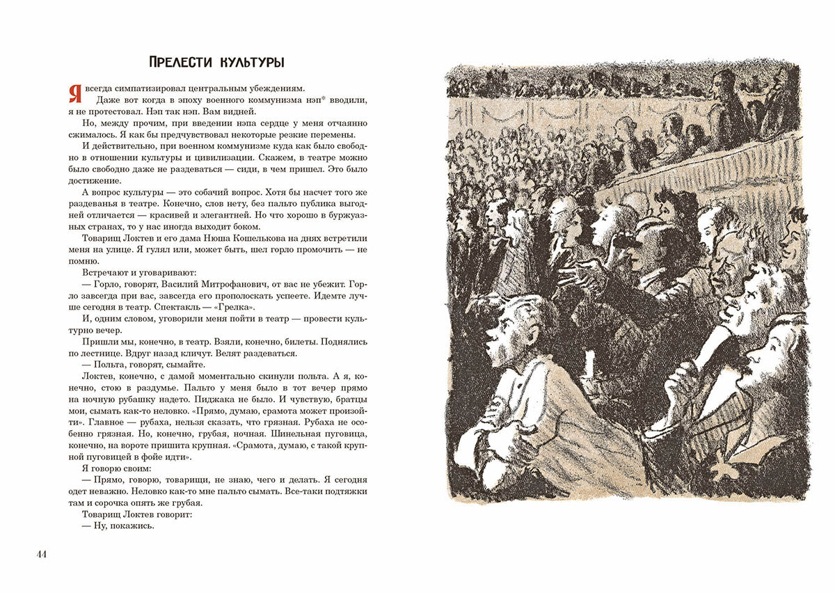 А в качестве «картинок» книгу украшают редкие автолитографии, выполненные признанным мастером книжной графики Евгением Кибриком для юбилейного издания произведений М. Зощенко «Уважаемые граждане» (1940). Именно этот сборник послужил основой данного издания. Его текст дополняют и другие рассказы, составившие заслуженную славу «веселому писателю с грустными глазами».