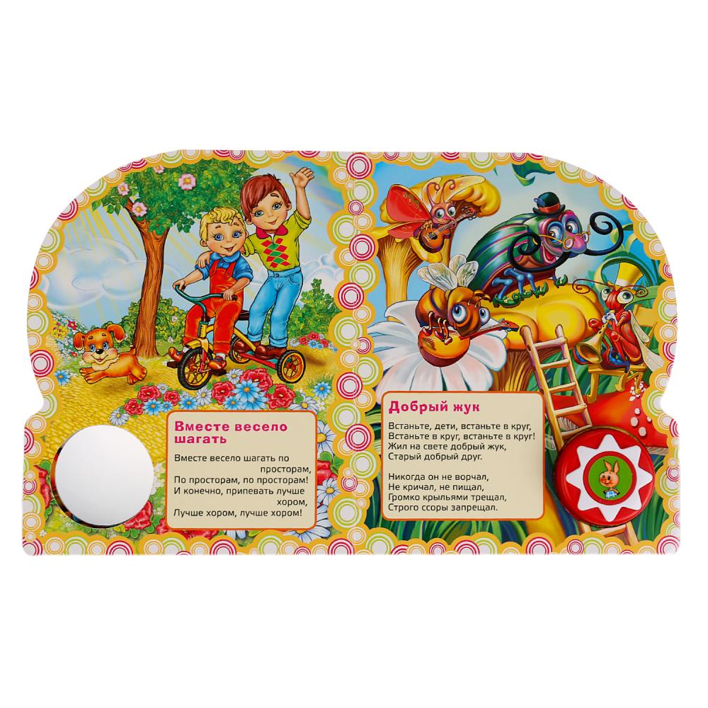 Нажми на кнопку — и услышь свою песенку. Нажми второй раз - и звук выключится. Красочные иллюстрации и песенки помогут освоить чтению увлекательными занятиями. Книжка сделана из плотного картона, поэтому родители могут не опасаться, что поднимут странички. Благодаря удобному формату книжку можно взять с собой в дорогу.