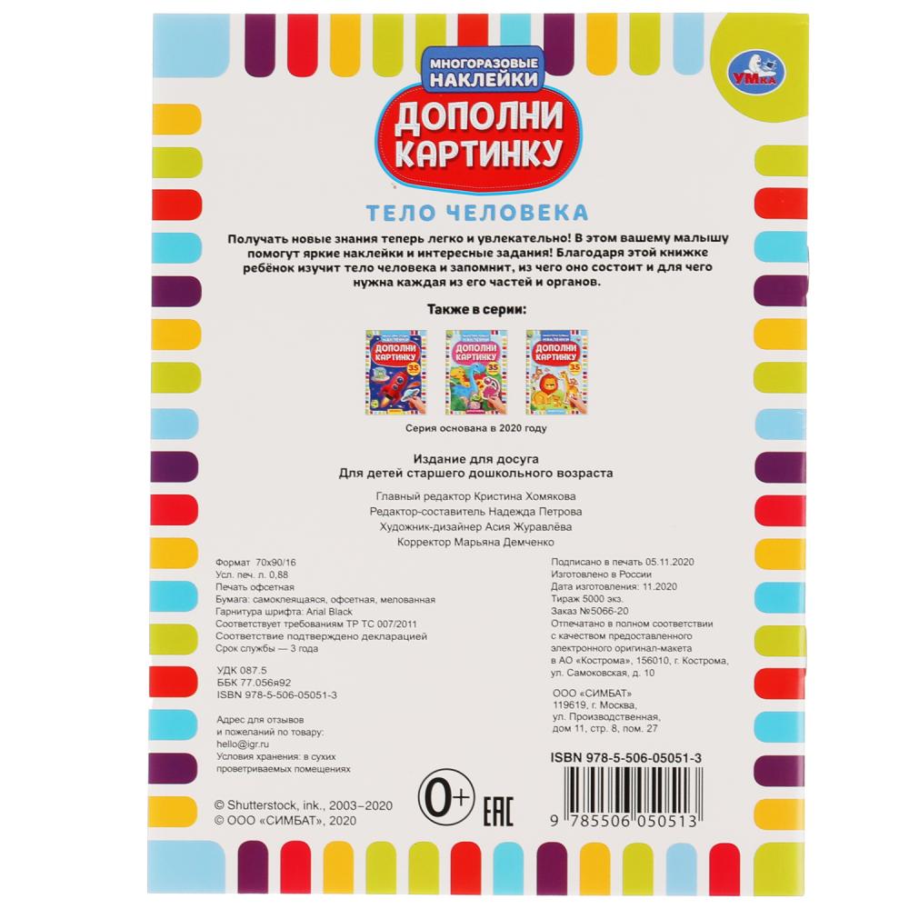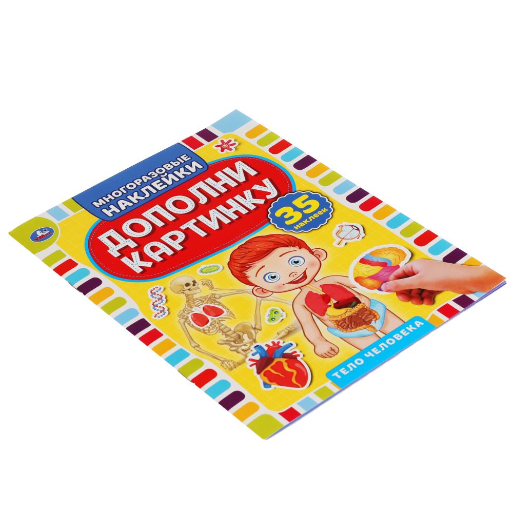 "УМКА". ТЕЛО ЧЕЛОВЕКА. ДОПОЛНИ КАРТИНКУ, 35 НАКЛЕЕК. ФОРМАТ: 160Х215 ММ. ОБЪЕМ: 8 СТР. в кор.50шт