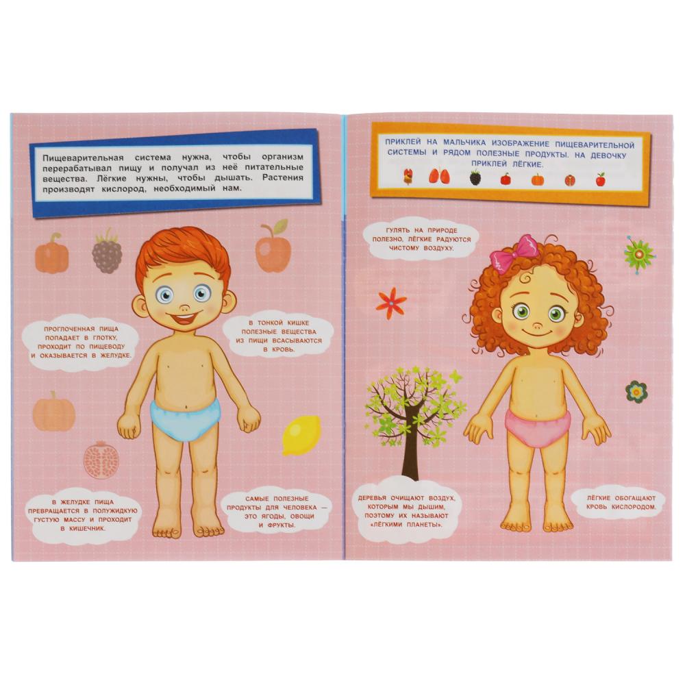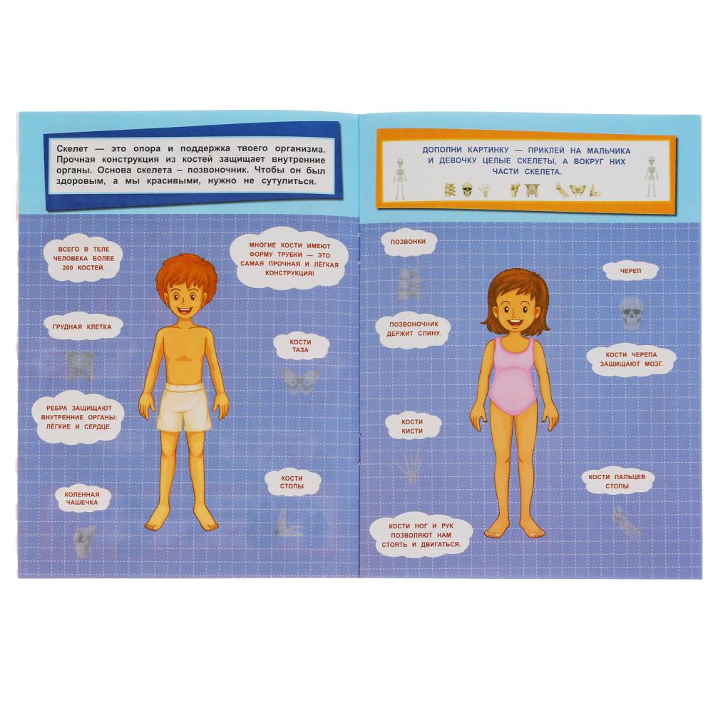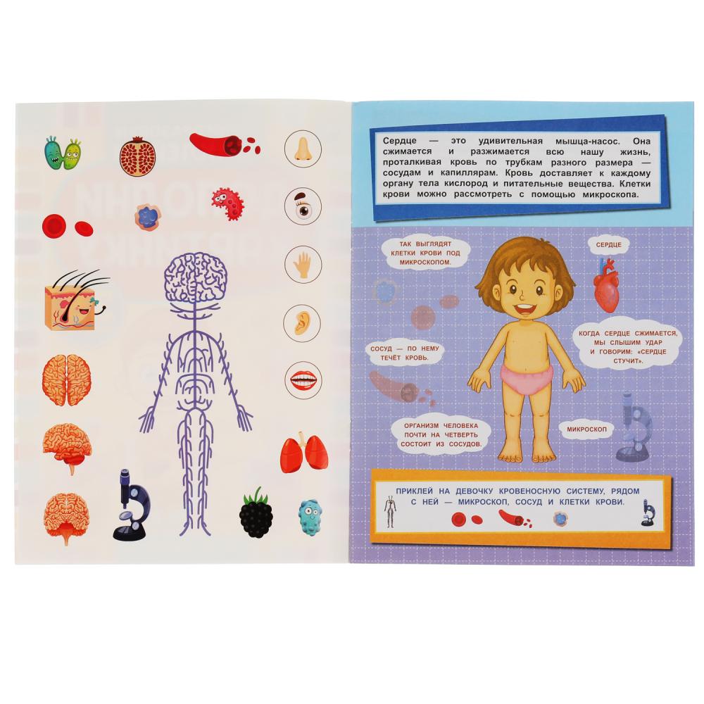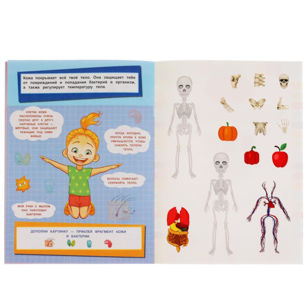 Малыш увлекательно и с пользой проведёт время, а занимательные задания и яркие наклейки познакомят его с особенностями строения тела человека и помогут ему запомнить, из чего оно состоит и для чего нужна каждая из его частей и органов. Благодаря компактному размеру книгу удобно брать с собой в дорогу.