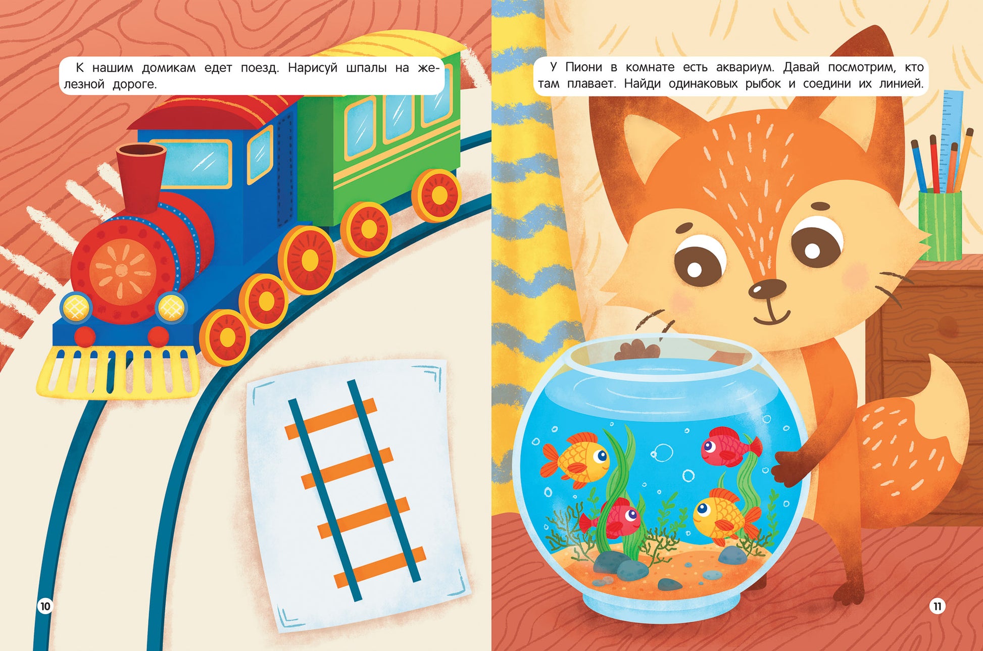 В книгах серии «Мои первые развивашки» малыш познакомится с лисёнком Пионей и отправится вместе с ним в путешествие навстречу знаниям. Он потренирует логическое мышление и внимание, научится различать цвета и считать. Кроме того, на страницах книг этой серии его ждут весёлые игры с лабиринтами, раскраски и задания с наклейками!
