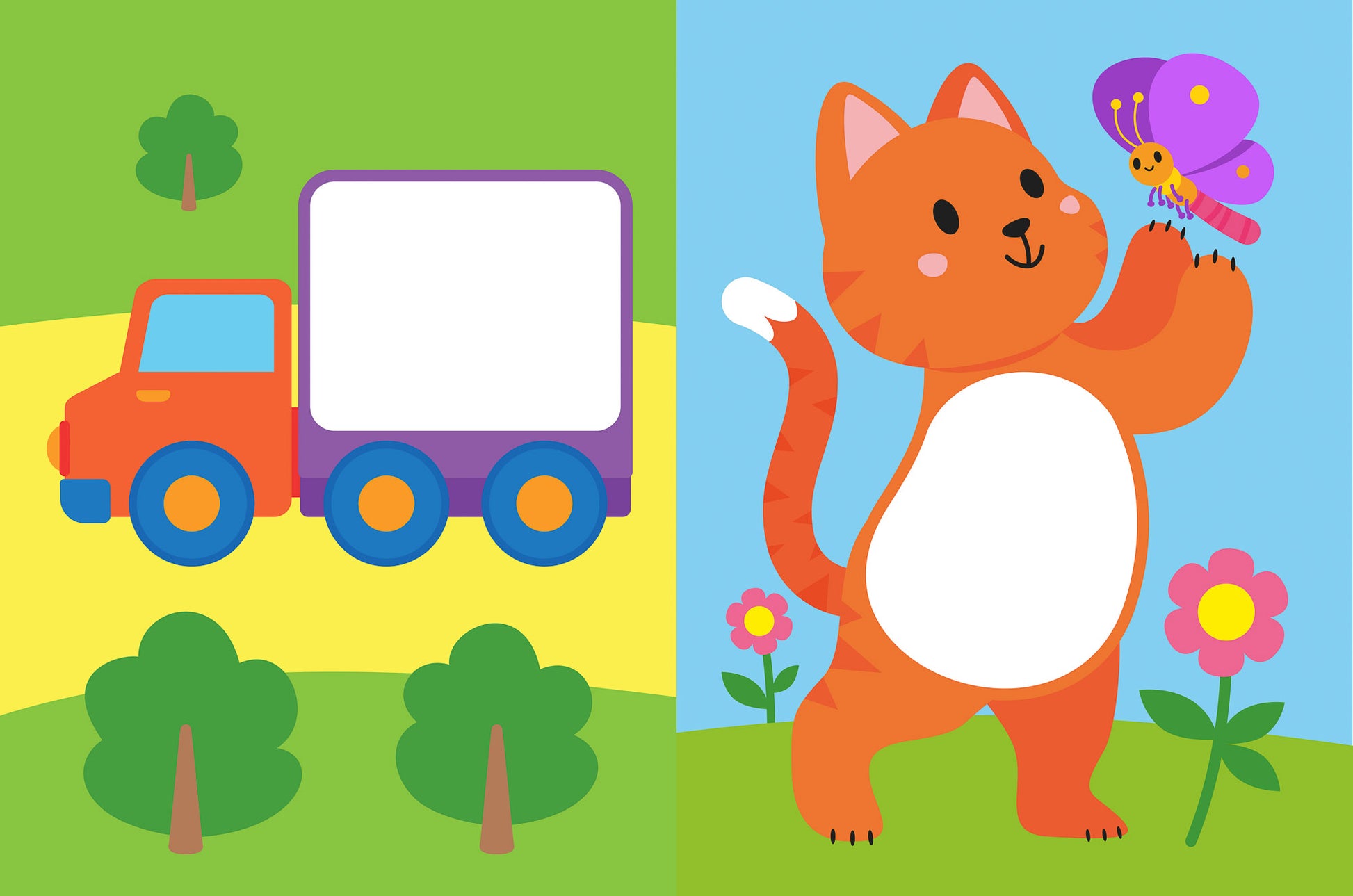 3. Если наклейки надоели, то можно взять карандаши и раскрасить белые пятна. Благодаря толстым контурам и простым рисункам с этой задачей справятся даже самые маленькие художники.
