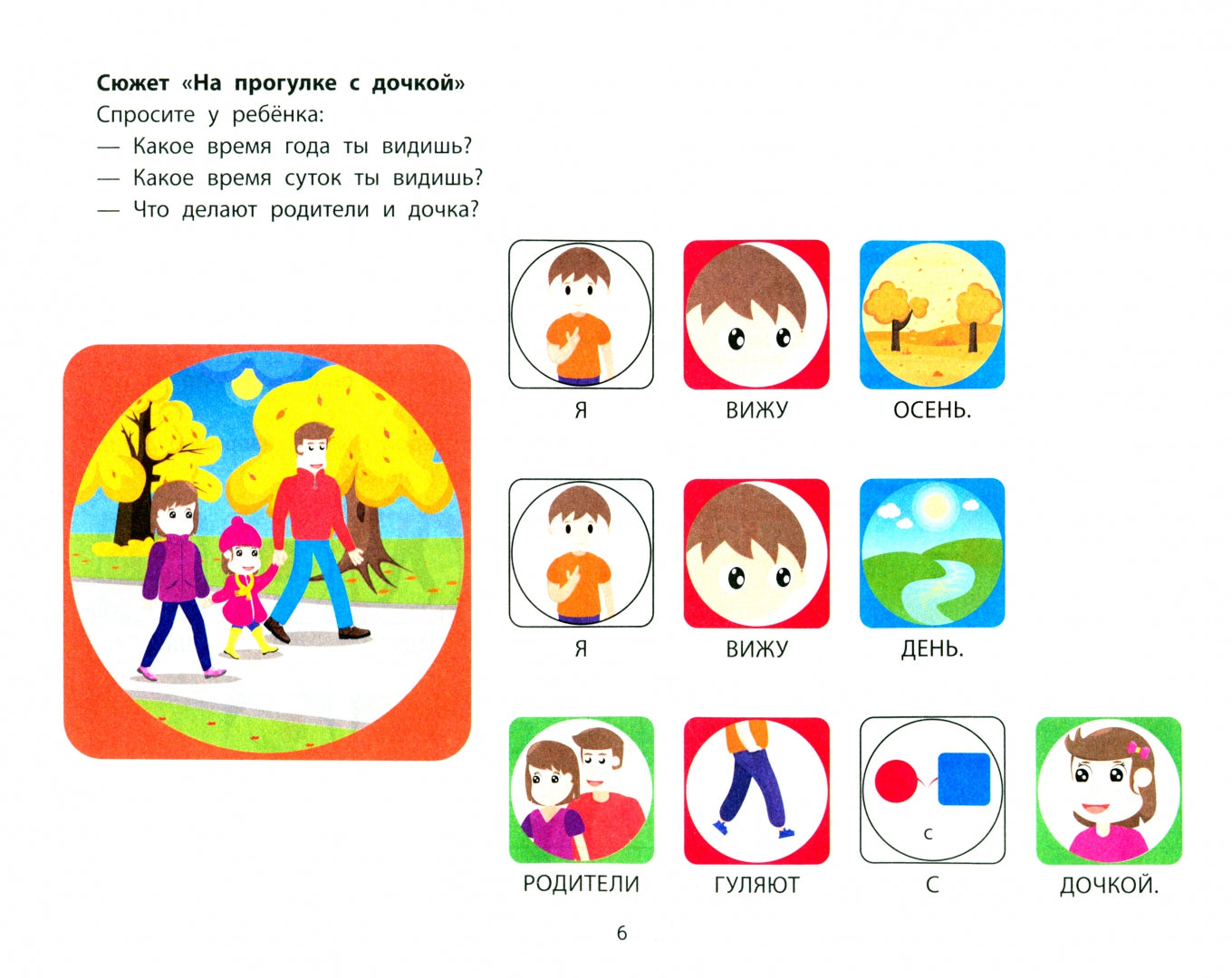 Это издание поможет ребёнку конструировать предложения и составлять рассказы по сюжетным картинкам из данного альбома. Материал разработан для детей разного уровня языкового развития, в том числе и для тех, у которых есть сложности со спонтанной речью.К каждому сюжету прилагаются фразы для чтения. Ребёнок с помощью наглядного моделирования предложения автоматизирует навык построения фраз, обогащая словарный запас и постигая азы чтения.