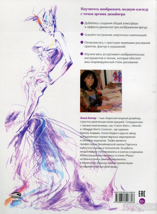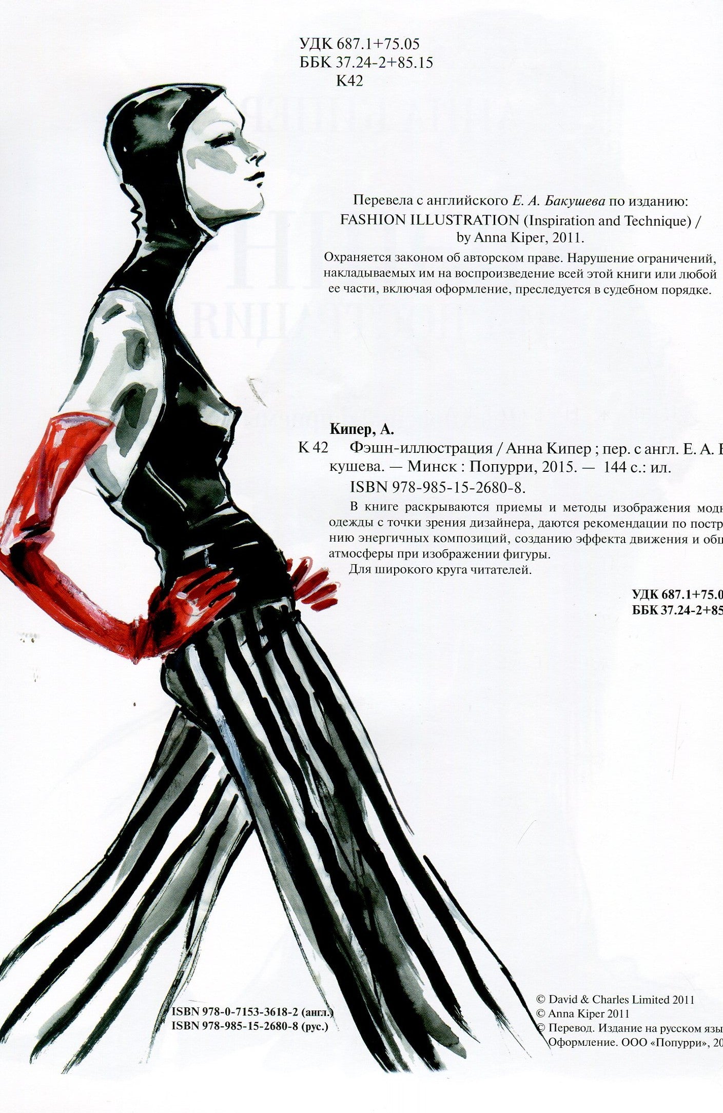 Handling time: 19 days Нью-йоркский дизайнер Анна Кипер написала пособие для всех, кто увлекается иллюстрацией и миром моды. Шаг за шагом она научит читателя уникальным приемам, которые позволят новичкам и профессионалам создавать великолепные рисунки, не только изображающие одежду и моделей, но и передающие живую атмосферу модных показов. Вы ознакомитесь с простыми приемами рисования принтов, фактур и украшений, освоите построение энергичных композиций и изучите множество изобразительных инструментов и техник, которые обогатят ваш индивидуальный стиль рисования.