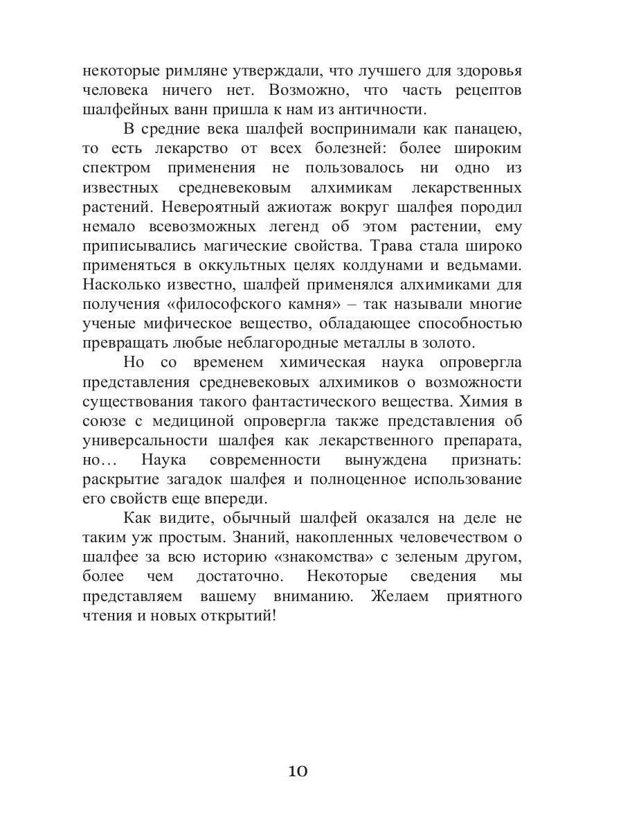 Handling time: 19 days Автор: Дубровин Иван, «Целительный шалфей»: В холодное время года мы часто простываем, зима — время эпидемий гриппа. А как помочь своему организму справиться с болезнью, чем с ней бороться? Таблетками? Нет, нет и еще раз нет! В трудную минуту нам на выручку приходят наши зеленые друзья — истинные целители. Прочитав эту книгу, вы узнаете, что шалфей — растение, помогающее справиться не только с простудой и гриппом, но и с расстройством желудка и даже аллергией. Женщины найдут в этой книге немало советов косметолога, которые помогут им стать моложе и красивее, сделав всего-навсего пару масок или приняв несколько ванн с ВОЛШЕБНИКОМ ШАЛФЕЕМ.