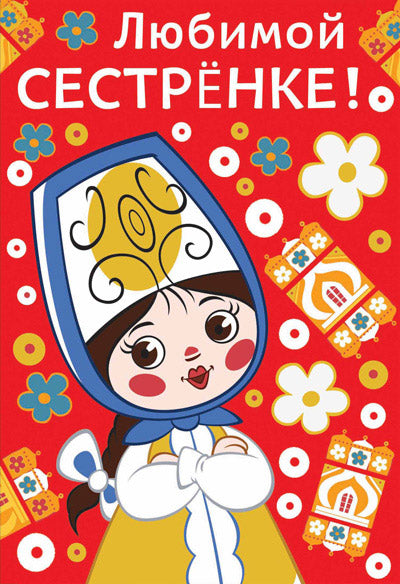 ЦР2-12330 Открытка средней формы Любимой сестренке! Текст, м-ф Вовка в тридевятом царстве (пластизоль)