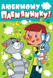 ЦР2-12332 Открытка формы среднего Любимому племяннику! Текст (пластизоль) (Из м-ф Простоквашино)
