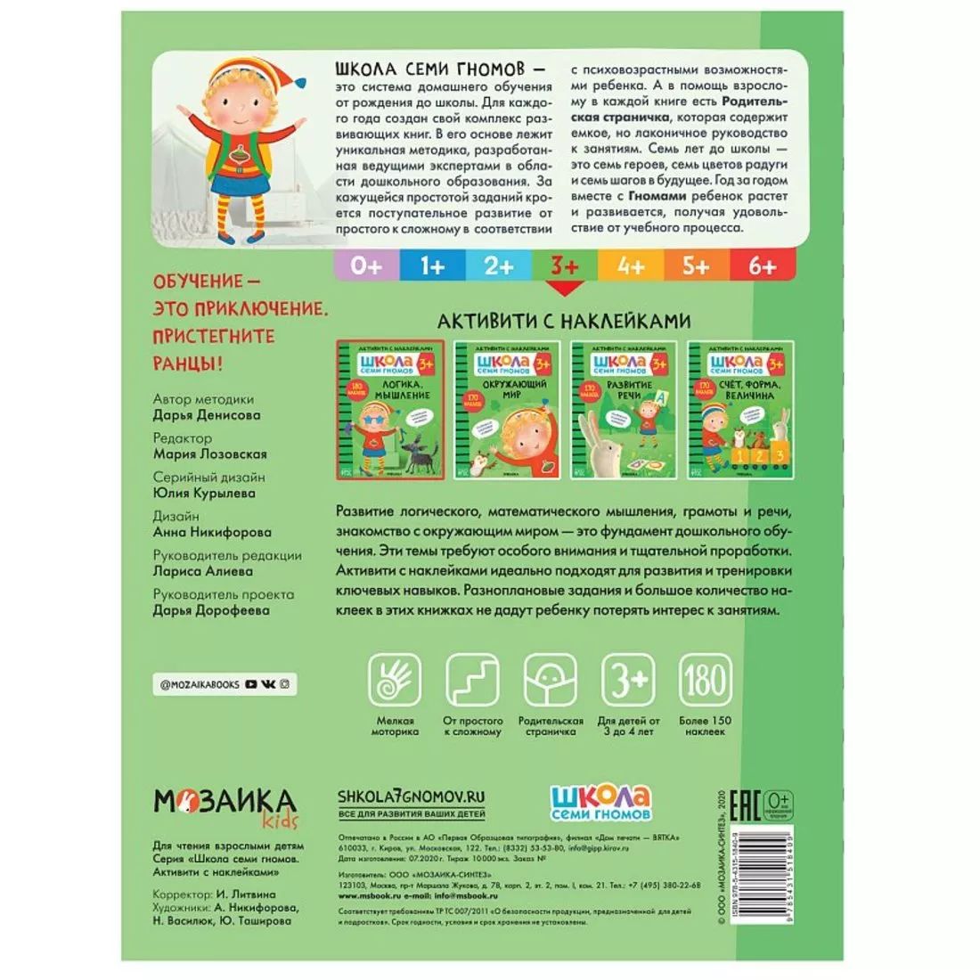 Школа Семи Гномов. Активити с наклейками. Логика, мышление 3+
