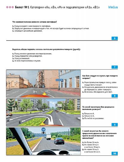 Экзаменационные билеты для приема теоретических экзаменов на право управления транспортными средствами категорий А, В, М и подкатегорий А1, В1 с комм