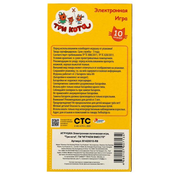 Игрушка "Электронная логическая игра Три Кота кор. 12,5*6,5*2,5см ИГРАЕМ ВМЕСТЕ в кор.2*144шт". Размер: 0.078.