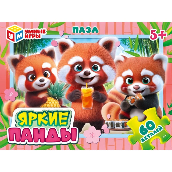 Яркие панды. Пазлы в коробке 60 деталей. 190х141х35 мм. Умные игры в кор.24шт