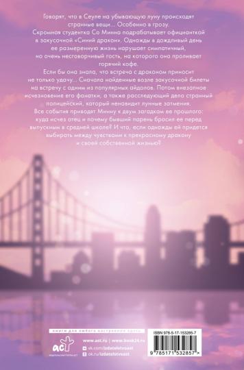 Handling time: 14 days Говорят, что в Сеуле на убывающую луну происходят странные вещи... Особенно в грозу.Скромная студентка Со Минна подрабатывает официанткой в закусочной "Синий дракон". Однажды в дождливый день ее размеренную жизнь нарушает симпатичный, но очень несговорчивый гость, на которого она проливает горячий кофе.Если бы она знала, что встреча с драконом приносит не только удачу... Сначала найденные возле закусочной билеты на встречу с одним из популярных айдолов. Потом внезапное исчезновение его фанатки, а также расследующий дело странный полицейский, который ненавидит лунные затмения.Все события приводят Минну к двум загадкам ее прошлого: куда исчез отец, и почему бывший парень бросил ее перед выпускным в средней школе? И что, если однажды ей придется выбирать между чувствами к прекрасному дракону и своей собственной жизнью?