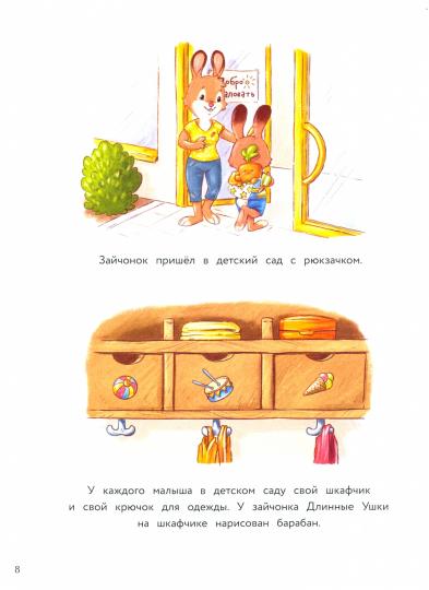 Очень важно читать детям с самого раннего возраста. Ещё до года малыши начинают тянуться к общению, чтение же книг и рассматривание картинок в них помогают родителям выстроить первые диалоги с ребёнком. Особенно хороши для этого книжки, в которых иллюстрации сопровождают каждую фразу в тексте.Книга про Зайчонка по имени Длинные Ушки, которую вы держите в руках, именно такая. Она идеально подходит для занятий с самыми маленькими читателями. Ситуации, в которые попадает главный герой книги, хорошо знакомы и понятны малышам. Читайте текст, чётко произносите названия персонажей и предметов, просите ребёнка показать их на иллюстрациях. Задавайте вопросы: "Что делает зайчонок? Куда он идёт? Что он увидел?" и т. п. Такая работа с книгой поможет малышу заговорить, расширит его словарный запас, будет способствовать развитию мышления ребёнка. Постепенно усложняйте задания, обращайте внимание на более мелкие детали иллюстраций, моделируйте диалоги персонажей, придумывайте продолжение историй, просите ребёнка дать оценку поступка того или иного героя.Книгу можно использовать для занятий с малышами от одного до трёх лет.Художник Надин Райц