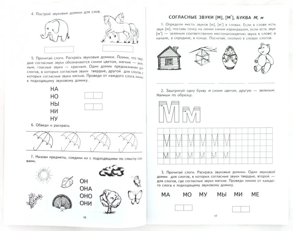 Все задания построены по принципу постепенного усложнения. Выполняя их, дети учатся читать слоги, определять количество слогов в слове, делать простейший звуковой анализ слов. По каждой теме даются задания по подготовке рук к письму.