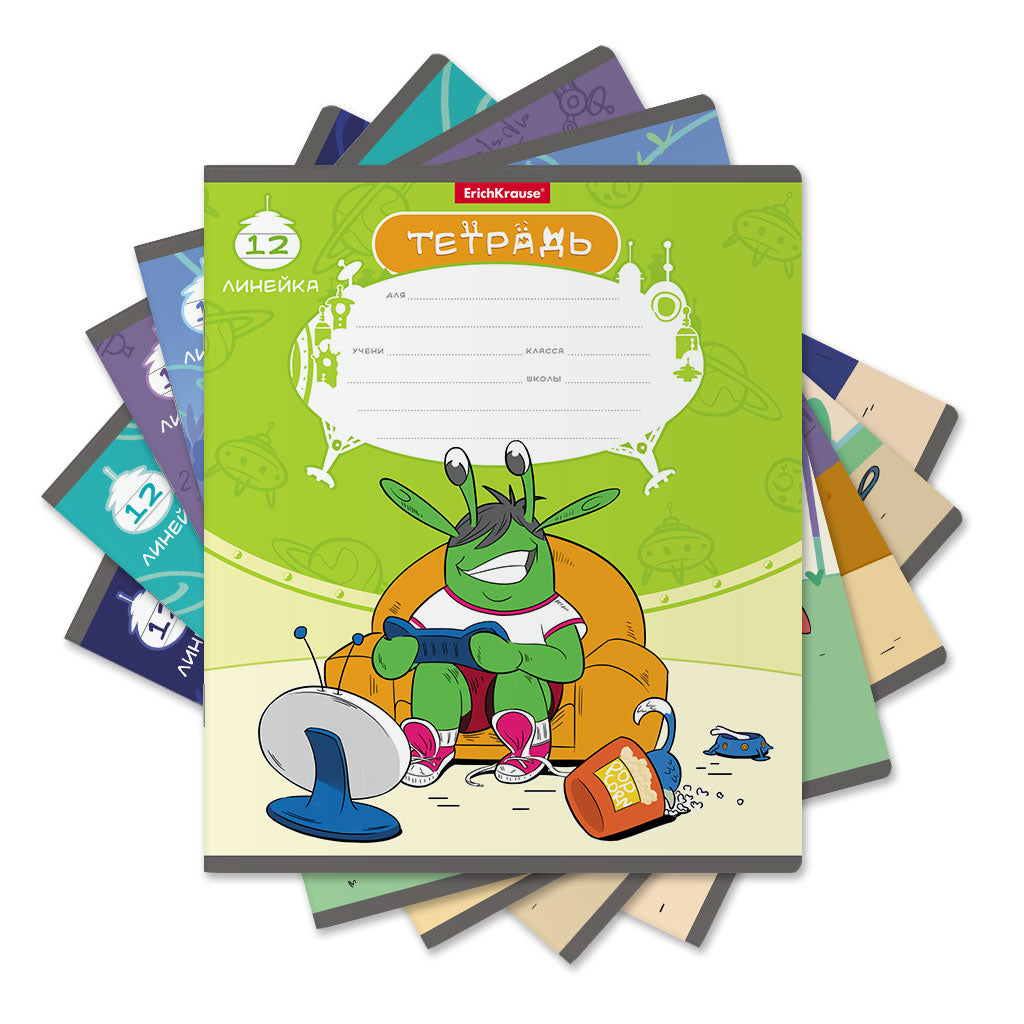 Игрушка "ErichKrause® Тетрадь школьная ученическая "Монстрики" 12 листов, линейка (поштучно) арт.58240".