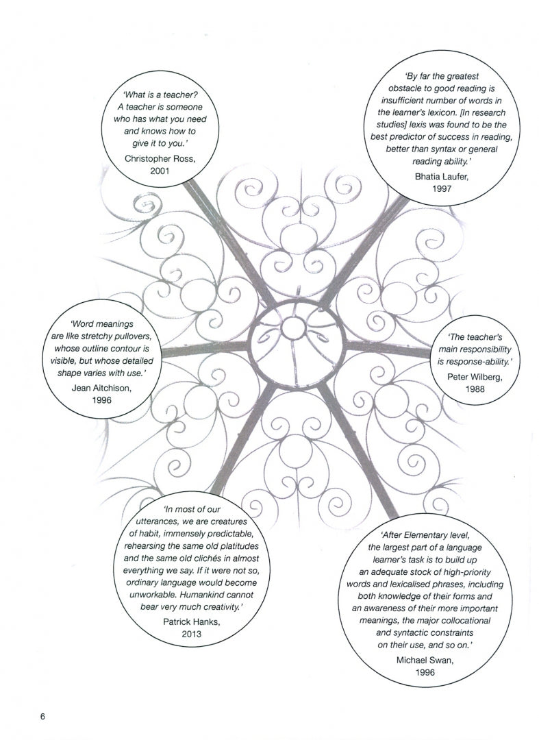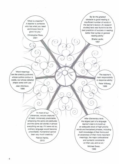 В книге «Teaching Lexically» показано, как выглядит лексический взгляд на язык, и рассматривается его отличие от более традиционного взгляда «грамматика + слова». Затем рассматривается, какие последствия такой взгляд может иметь для практики преподавания. В основе «Teaching Lexically» лежат три основные идеи: грамматика и лексика лучше преподаются в сочетании; контекст играет важнейшую роль. Классы должны быть насыщенными информацией, а информация должна быть полезной. «Teaching Lexically» состоит из трёх отдельных частей, которые поочередно посвящены теории, практике и развитию. Часть A подробно рассматривает основные идеи, лежащие в основе лексического обучения. Авторы начинают с принципов, объясняющих, как и почему люди учатся, а затем представляют два конкурирующих взгляда на язык: «грамматика + слова» (и навыки) и лексический взгляд. Завершается книга углублённым исследованием того, как выглядит язык с лексической точки зрения. Часть B содержит набор упражнений, которые применяются на практике в таких областях обучения, как лексика, грамматика, чтение, аудирование и так далее. Эти упражнения предназначены для применения к любым учебным материалам и призваны помочь учителям сформировать собственный арсенал лексически обоснованных методик. В части C рассматриваются некоторые вопросы и аспекты, связанные с тем, где и как может применяться лексическое обучение. В ней также рассматривается, как можно сделать обучение и развитие учителей более лексически ориентированными, и, наконец, предлагаются пути развития как автора лексических материалов.