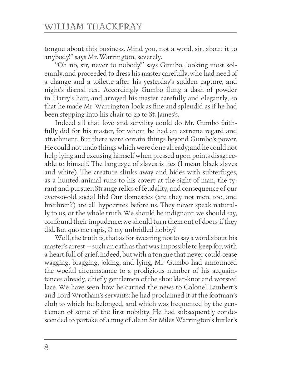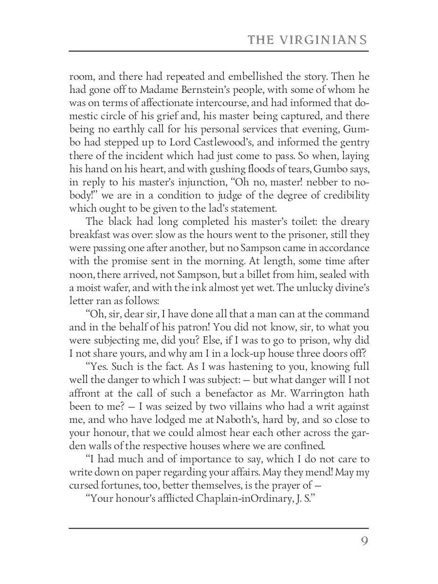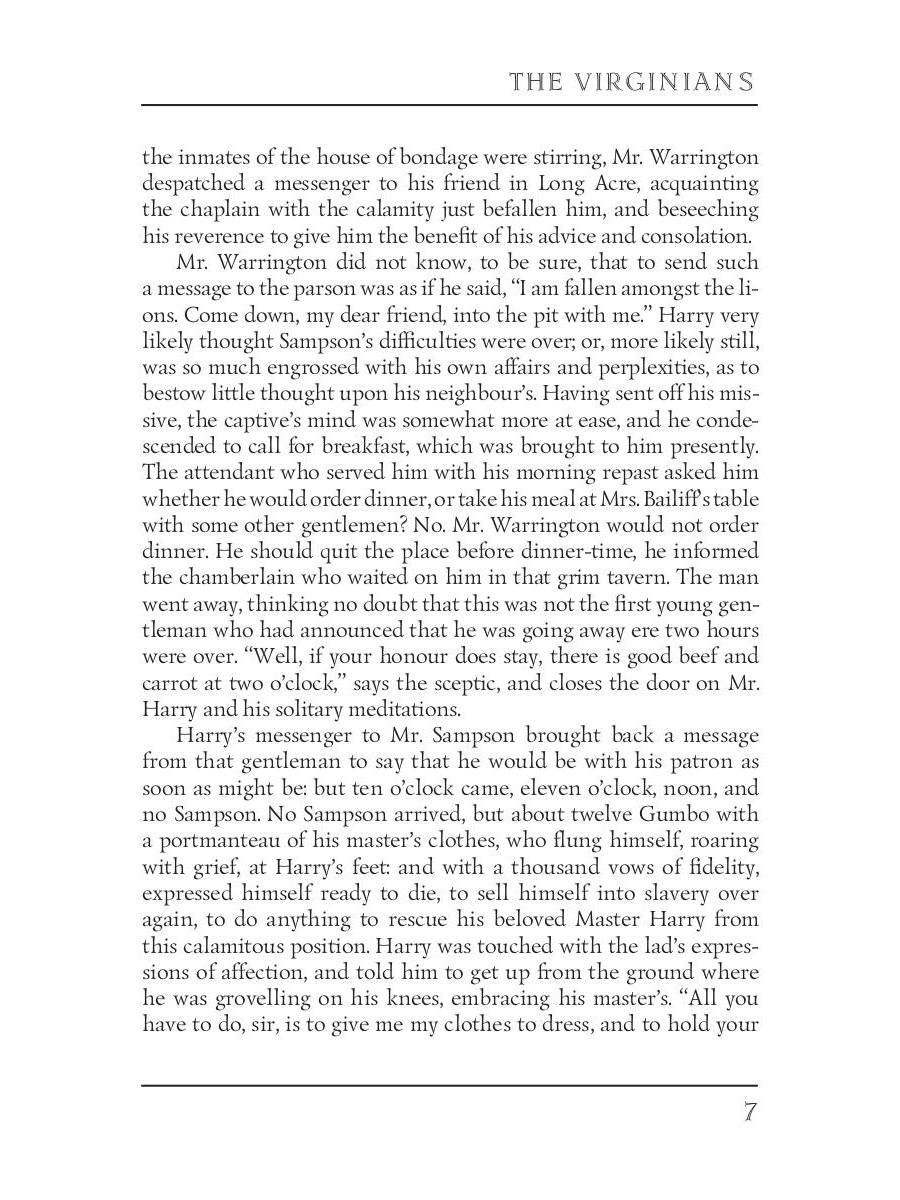 Handling time: 19 days Автор: Thackeray W., «The Virginians 2 = Виргинцы: рассказ о последнем веке 2: на англ.яз»: William Makepeace Thackeray (1811—1863) was a British author and novelist mostly known for his satirical works such as "Vanity Fair" that showed an ironic representation of the British society of those times. "The Virginians" is a historical novel, a sequel to "The History of Henry Esmond, Esq" loosely linked to "The History of Pendennis." It tells the story of Henry Esmond's twin grandsons, George and Henry Warrington. Henry's romantic connection with an older woman makes him join the British army and fight under the command of General Wolfe during the capture of Quebec. During the American War of Independence, he takes the revolutionary side. This event forces George, who is also a British officer, to resign rather than go into battle against his brother.